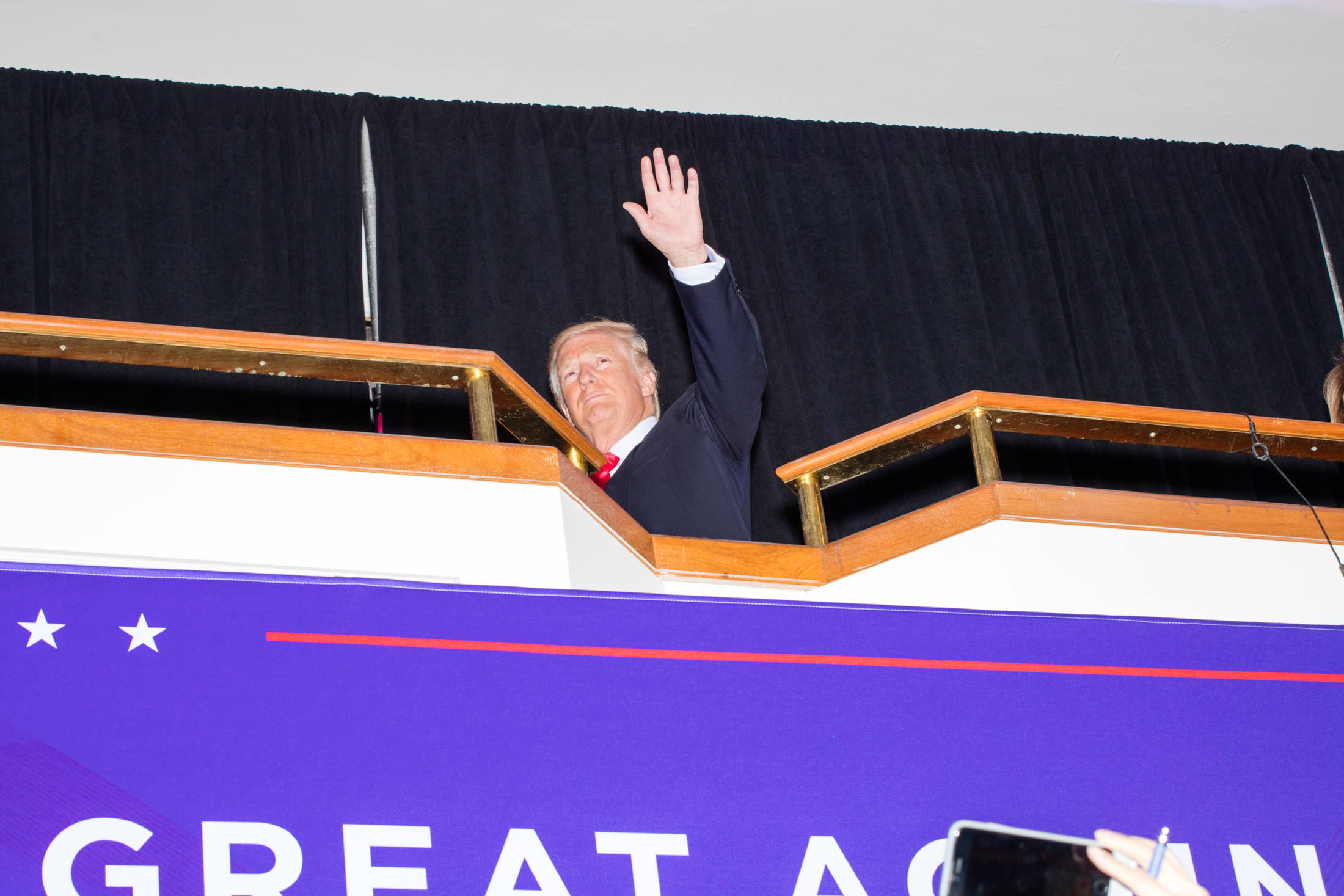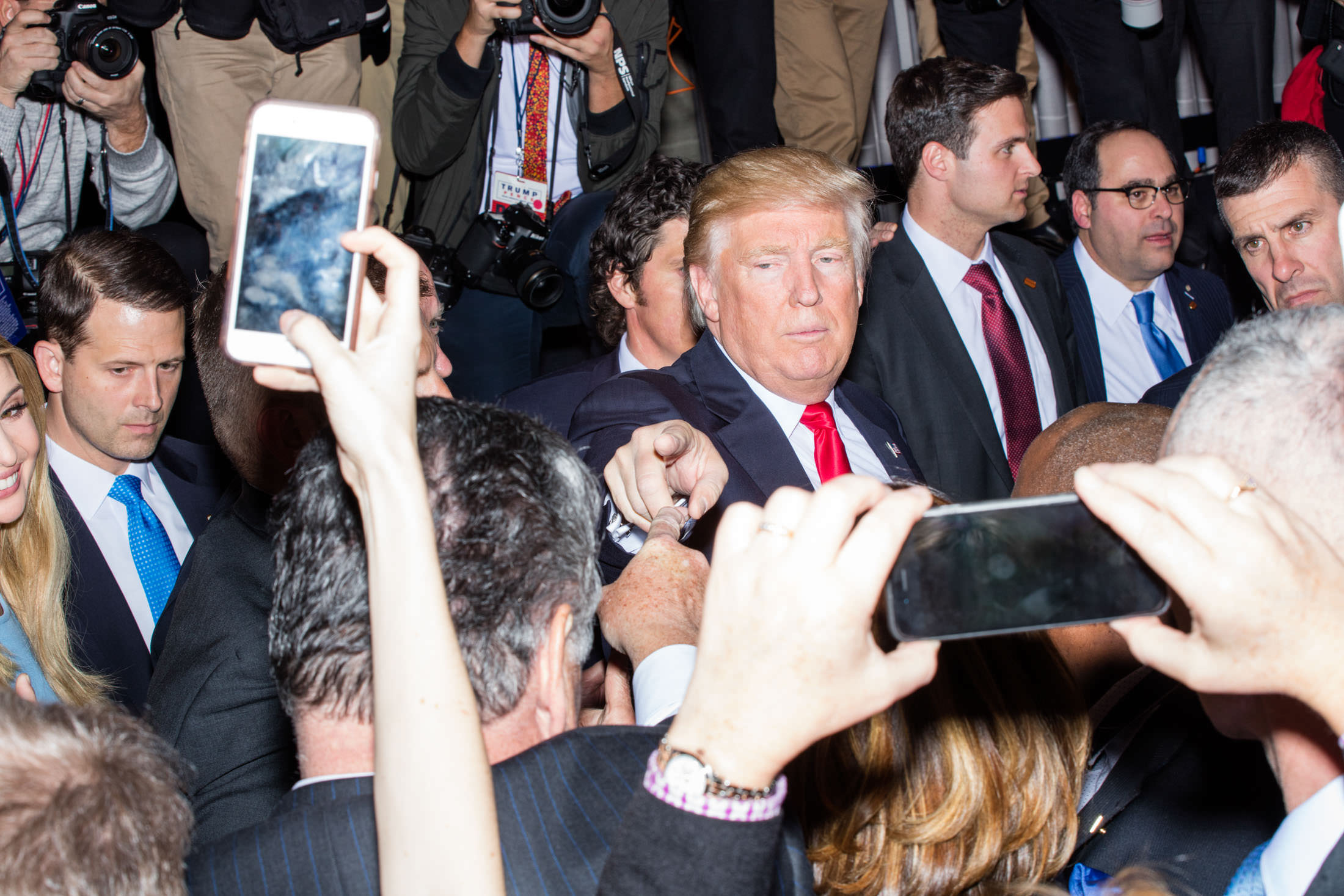 President-elect Donald Trump enters the ballroom of the New York Hilton at his election night victory rally.