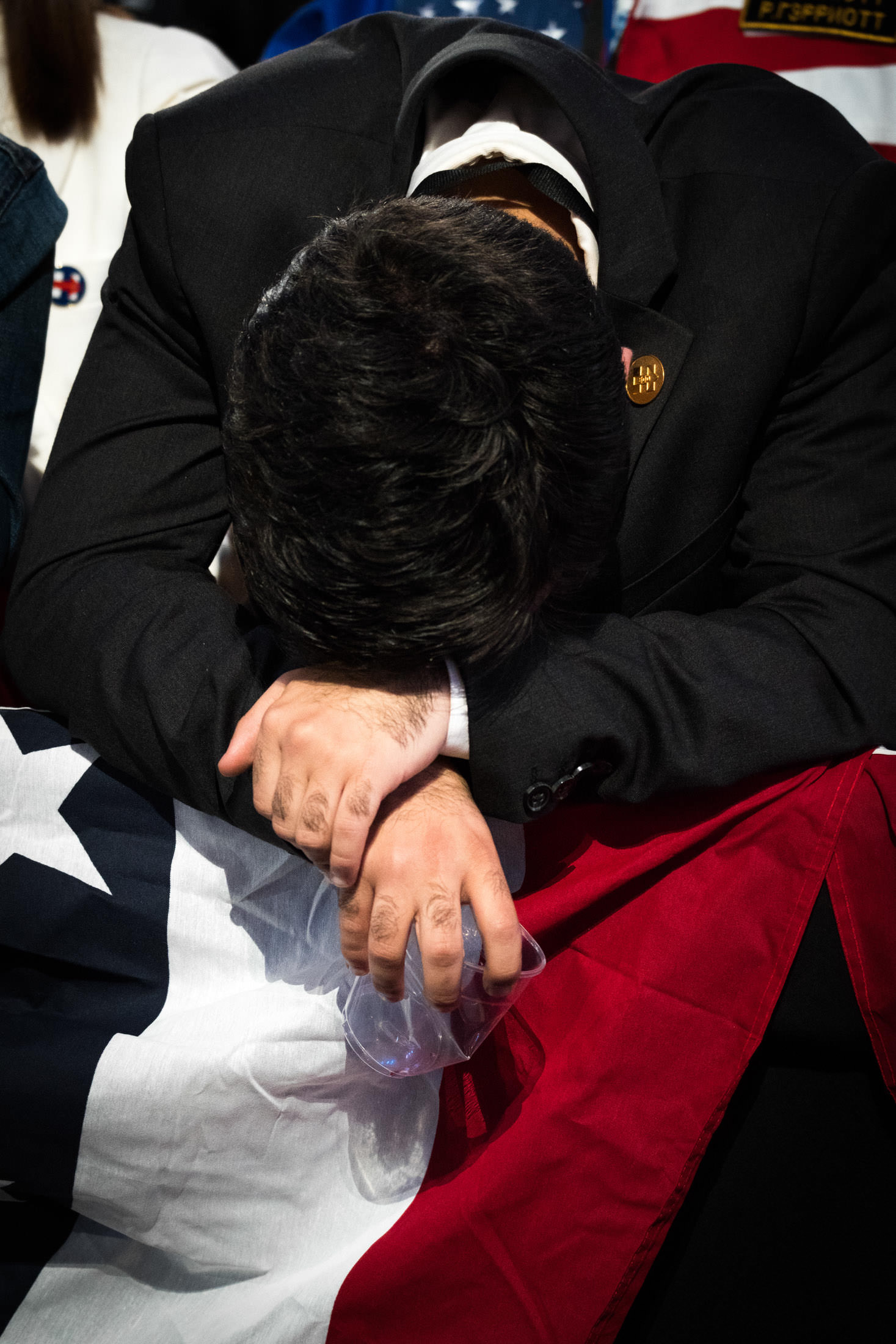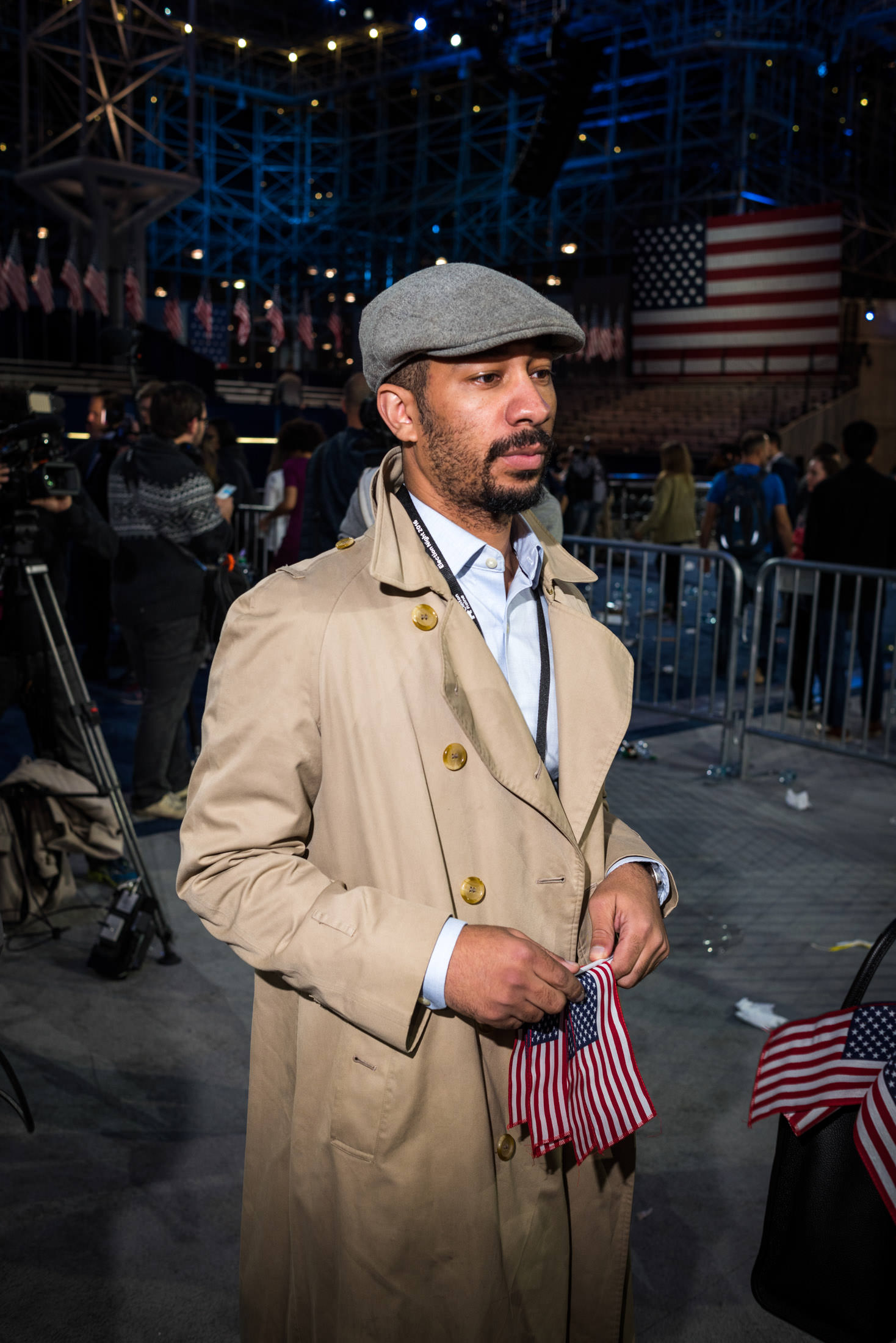 Jonathan Whitley, a guest at Clinton's election night event, takes in the news that Clinton has conceded.