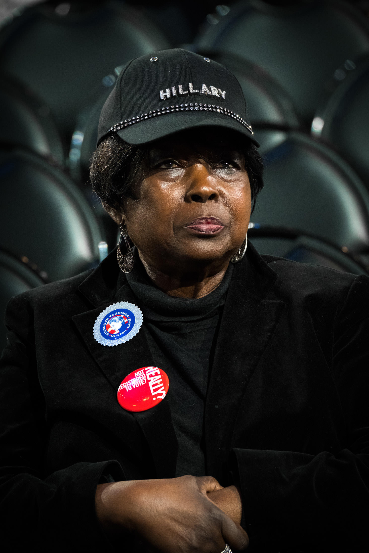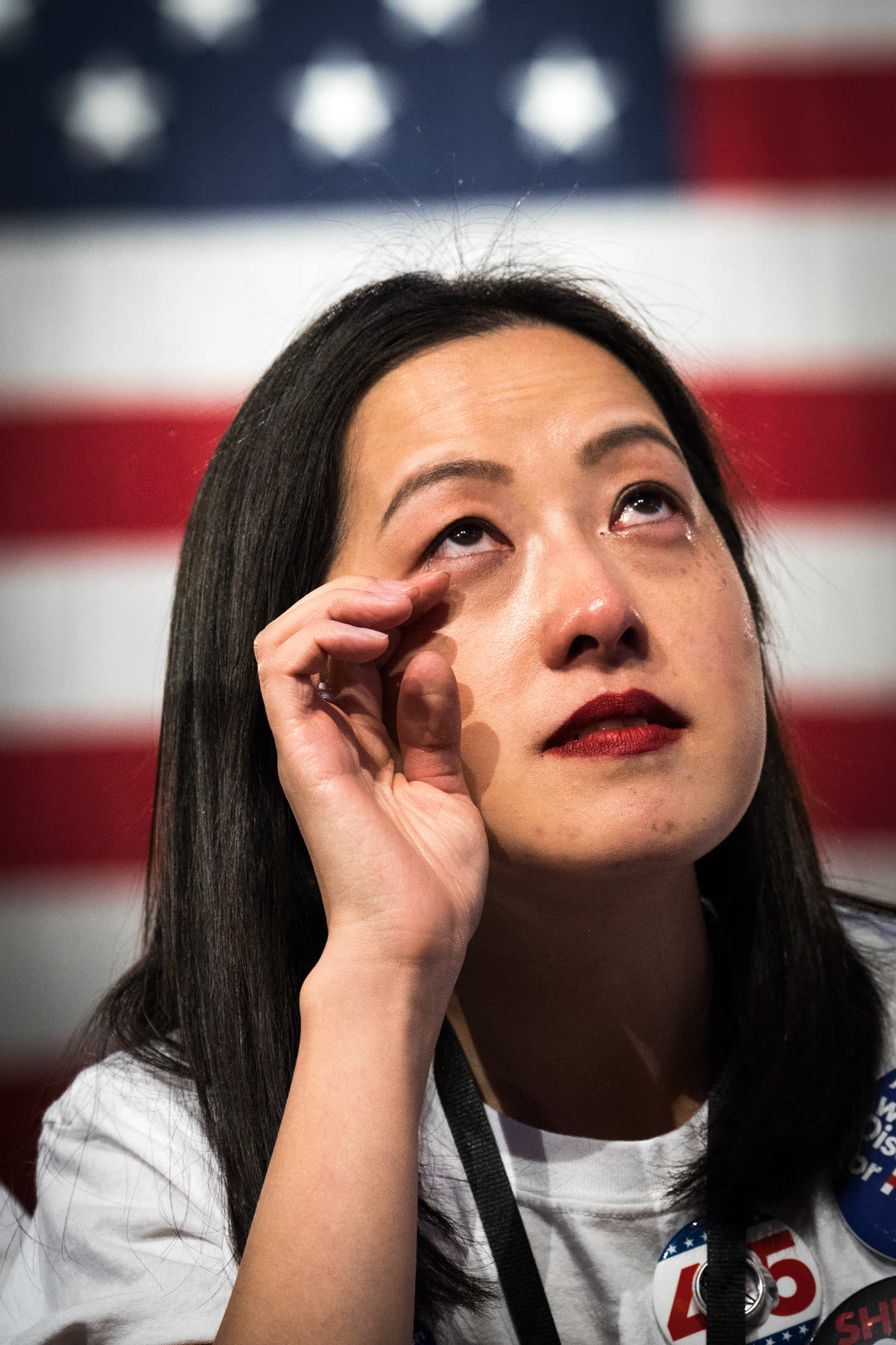 A guest at Hillary Clinton’s election night event at the Javits Center in New York.