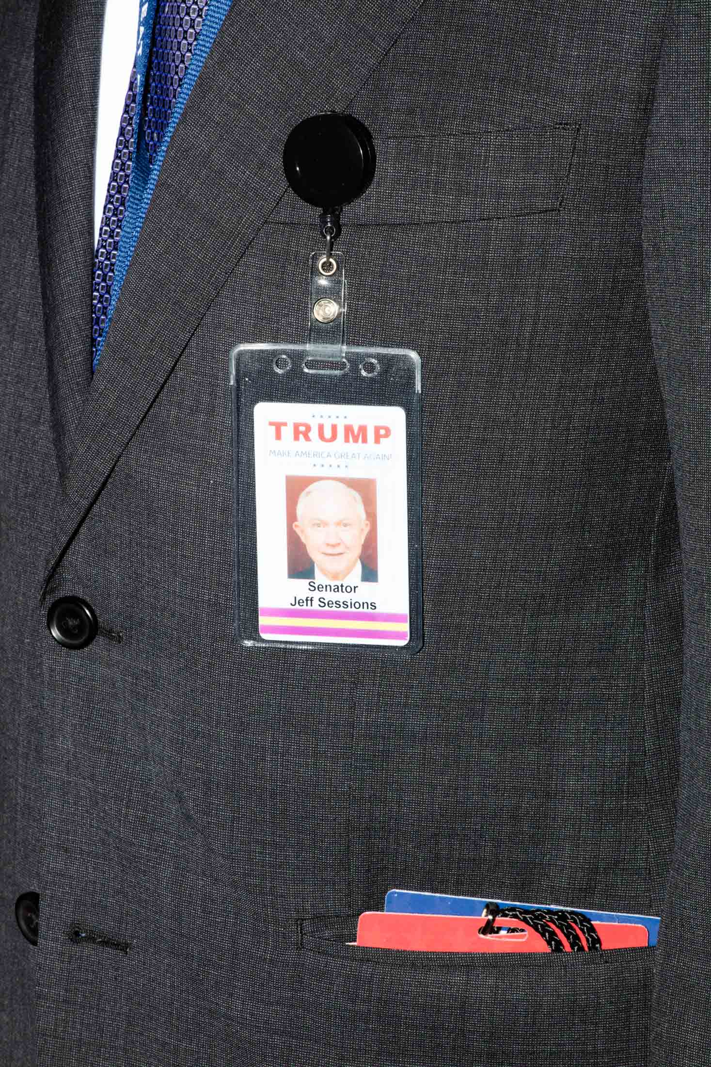From left: campaign manager Kellyanne Conway; a cake sculpted into a likeness of Trump designed by Melissa Alt of Teaneck, N.J., on display near a bar in the ballroom; Trump supporter and Alabama Senator Jeff Sessions.