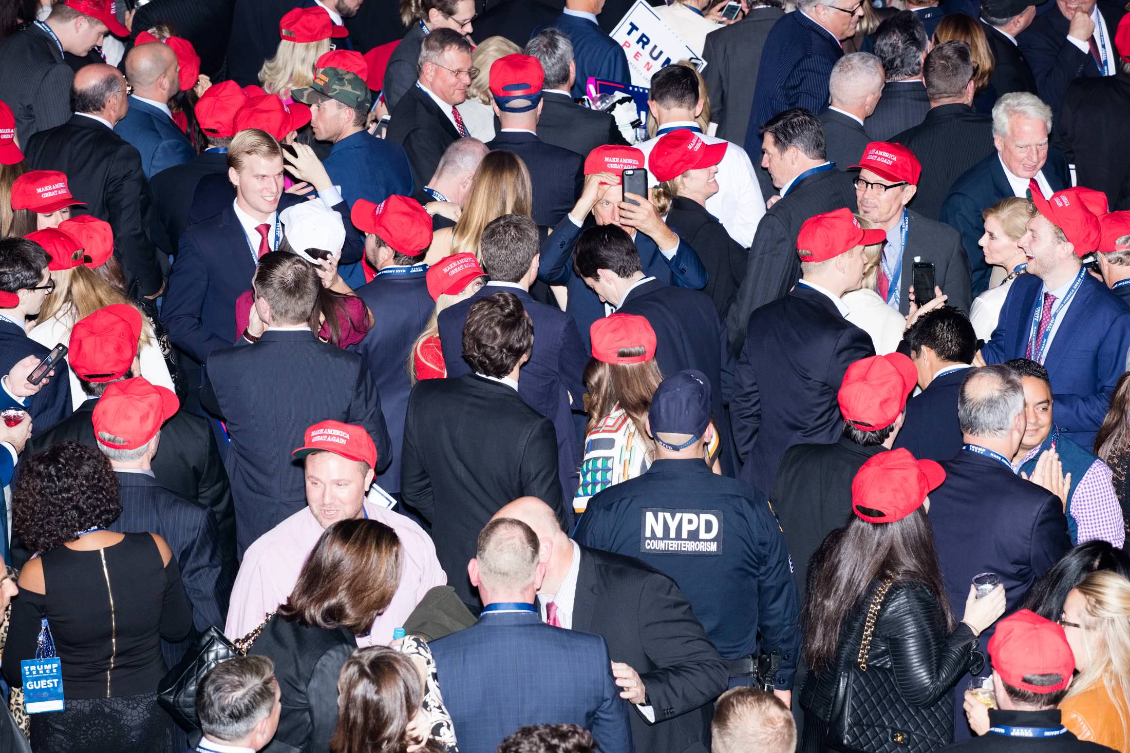 Donald Trump’s, at the New York Hilton Midtown, was packed with the Republican candidate’s red-topped die-hards and dotted with campaign VIPs. Manager Kellyanne Conway and transition team leader Chris Christie were there, of course, along with the likes of Omarosa Manigault and Stephen Baldwin (the one who supports Trump rather than inhabits him). Whoops of triumph, some of them astonished, bounced around the ballroom as the night went on, the results ticked in, and it became clear that voters’ contempt for Washington had outpaced the pollsters. A cake had been sculpted into an unnecessarily dour bust of Trump, given the outcome. If it was meant to make him look presidential, that was also unnecessary by the time the party was over.