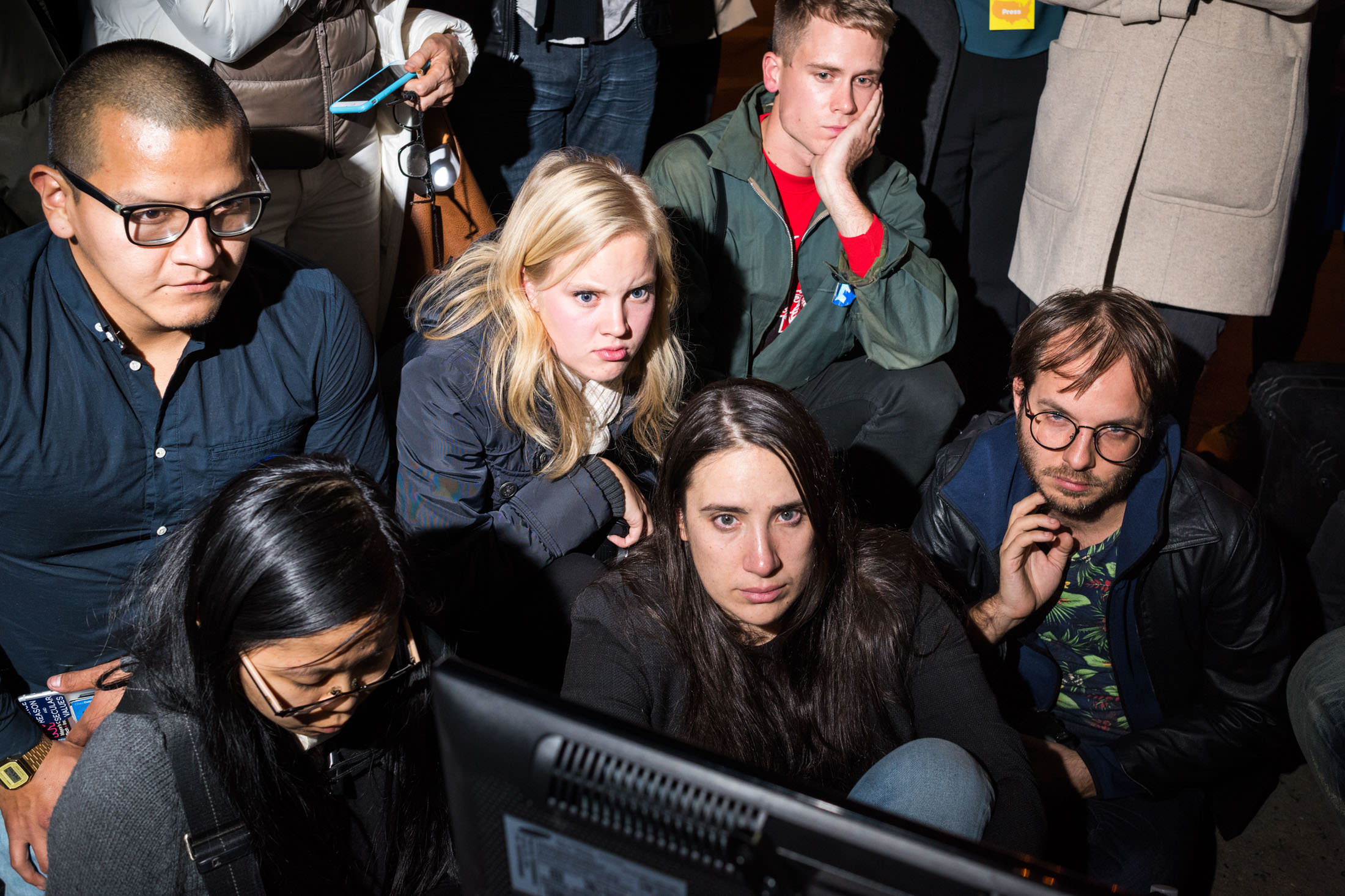 Twenty-five blocks away at the Javits Center, Hillary Clinton’s party started as a cautious prelude to victory, quickly advanced to a nail-biter over Florida that might have knocked out her rival in time to bask in the CNN coverage from home, and ended in agony. The photos here attest to the waves of shock and heartbreak that swept the ballroom as the votes were tallied. Debbie Wasserman Schultz, the former Democratic National Committee chair forced out when her e-mails opposing Bernie Sanders came to light, was on hand, as was the Rev. Al Sharpton, in an election year when the lives of African Americans were front and center. In the end, campaign chairman John Podesta came out to urge guests to go home, promising that their candidate would appear on Wednesday. She did, delivering a speech that brought more choked sobs in homes and offices across the country.