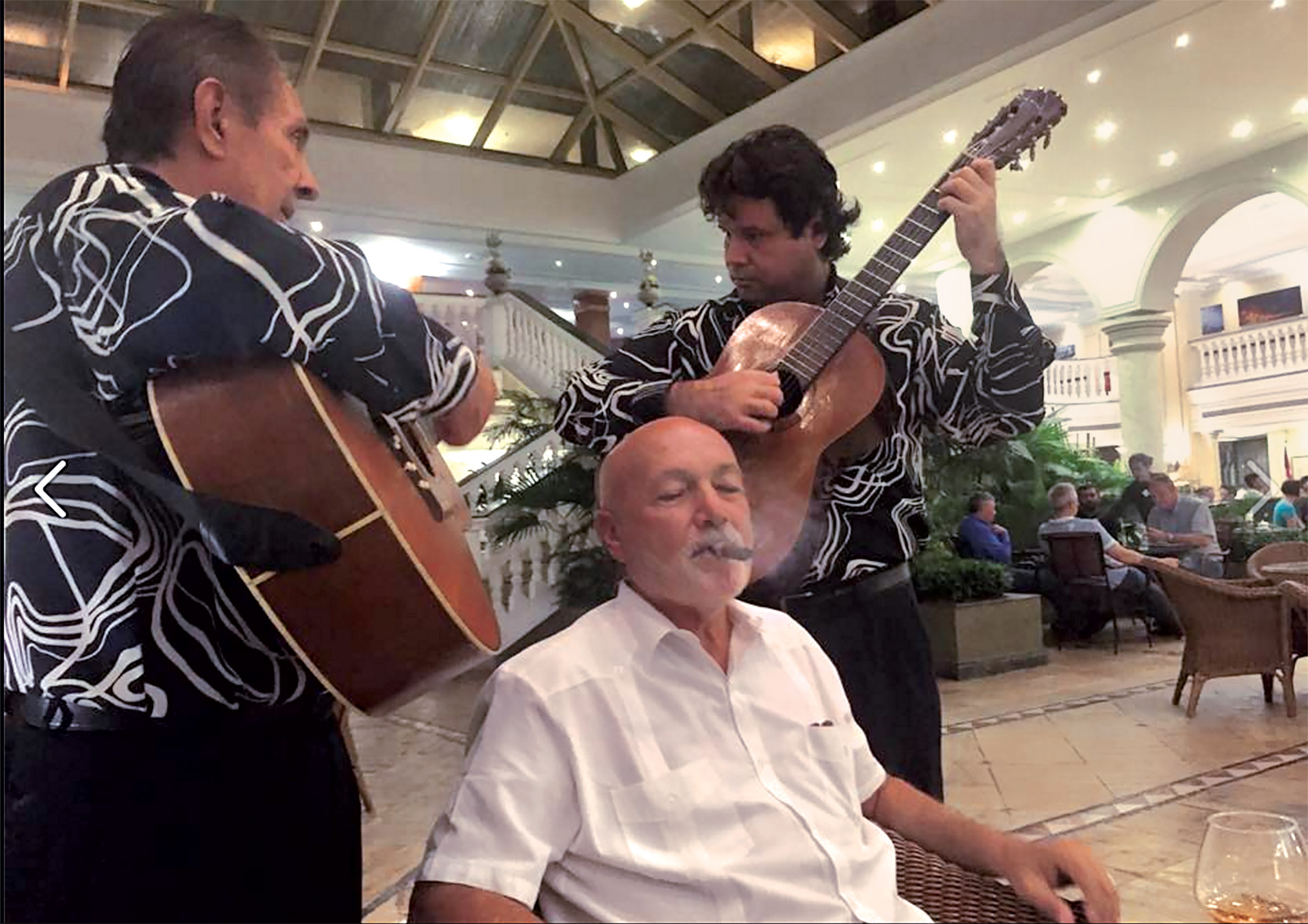 A couple of Hulse’s cultural exchanges may have taken place toward the end of last year. Photographs and a video posted to Hulse’s Facebook page in December show her husband and Greenblatt, the Trump chief legal officer, at the Floridita restaurant in Old Havana, a favorite of Hemingway’s. Another set of pictures, posted a month earlier, shows Russo, Glick, Lieberman, and Soave listening to a live performance of Hotel California in the lobby of the Parque Central hotel in Old Havana.