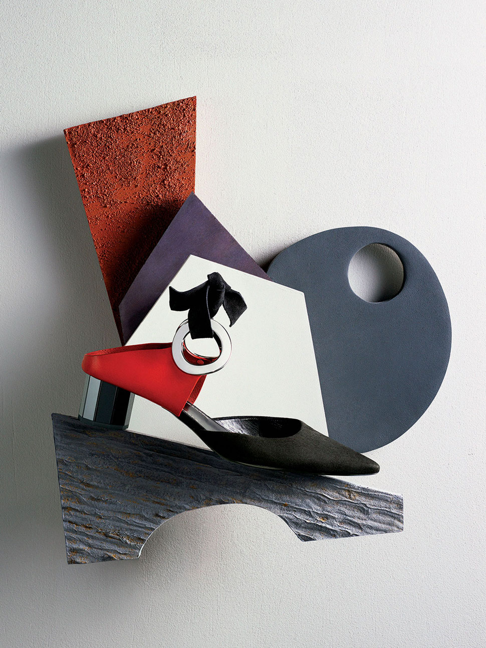 Block heels are in. This pair by Proenza Schouler designers Jack McCollough and Lazaro Hernandez adds sex appeal with a pointed mule toe and ribbons with silver hardware. The back of the shoe is calf leather; the tie ribbons and toe are suede. $1,050; proenzaschouler.com