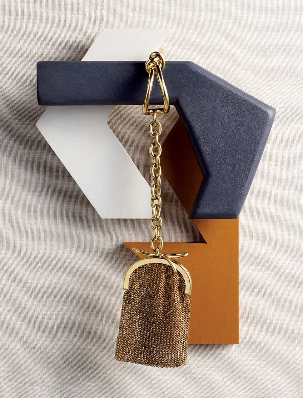 The classic Balenciaga bow bracelet now comes as this tresse wristlet. The attached pouch—just the right size for a lipstick and phone—is made of brass chain mail that’s practically indestructible. $2,595; balenciaga.com