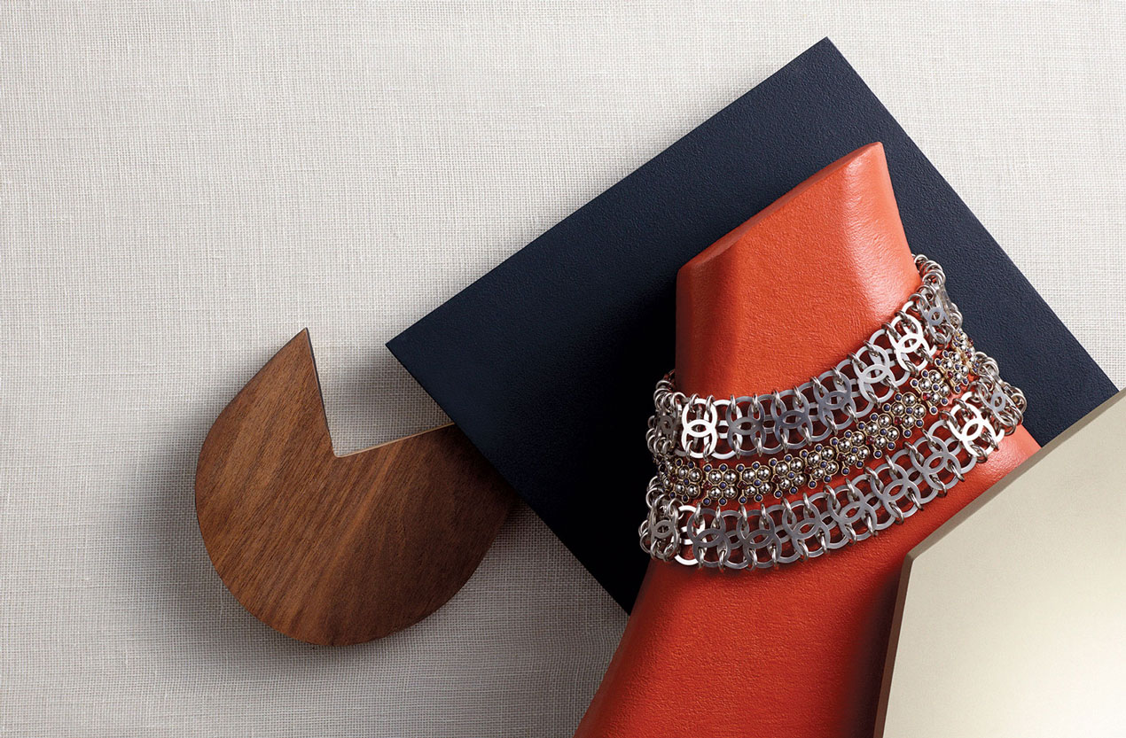 A layering of these Chanel necklaces gives even the most ladylike outfit a punk edge. Here, a single line of glass stone beads separates two metal chokers. The more the merrier. $2,450 (glass stone), $1,700 each (metal); chanel.com
