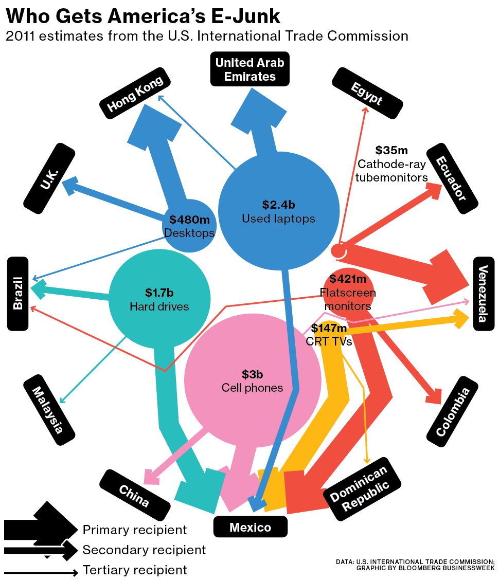 The lack of a formal, regulated recycling industry is one of many reasons Mexico has become a magnet for spent electronics. E-waste is an opaque, poorly tracked trade, but the U.S. International Trade Commission concluded in a 2013 study that Mexico is the No. 1 importer of used and junked electronics from the U.S., taking in almost 129,000 tons a year.