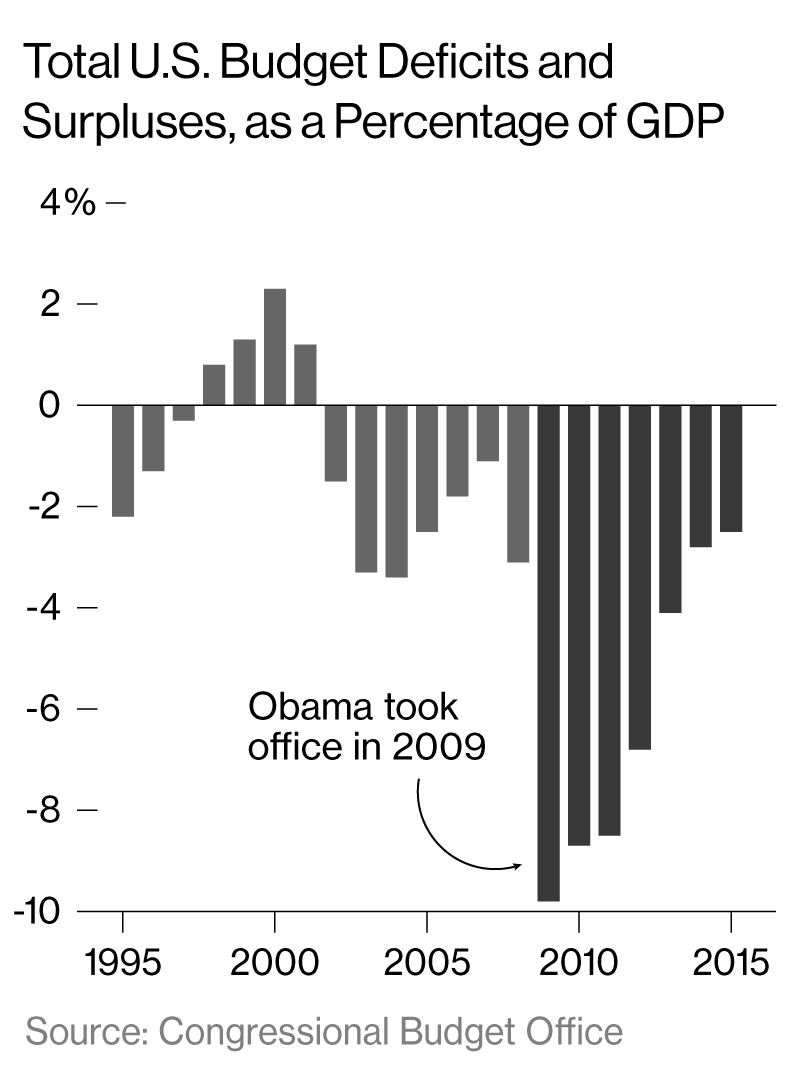 OBAMA: Well, first of all, toward the end of my second term, I think among the business community, there’s maybe a greater acknowledgment, a less grudging acknowledgment, that we steered through the worst financial and economic crisis in our lifetimes successfully—certainly more successfully than many of our peers. We’re now 10 percent above the GDP pre-crisis. In Europe, for example, they’re just now getting back to even.