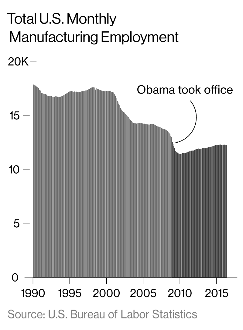 So we’ve got to go into those communities that have been hard-hit and say, “We can still make stuff, but if your strategy is just to make the same old steel that you were making 30 years ago, you’re not going to be able to outsell the Chinese or the Brazilians or others.” But what we can do is have an old Kodak plant suddenly be at the cutting edge of photonics and train an entire generation through your community colleges and universities so that they’re expert in that field, and you’ll see a new growth that’s compatible with globalization and will allow you to succeed.