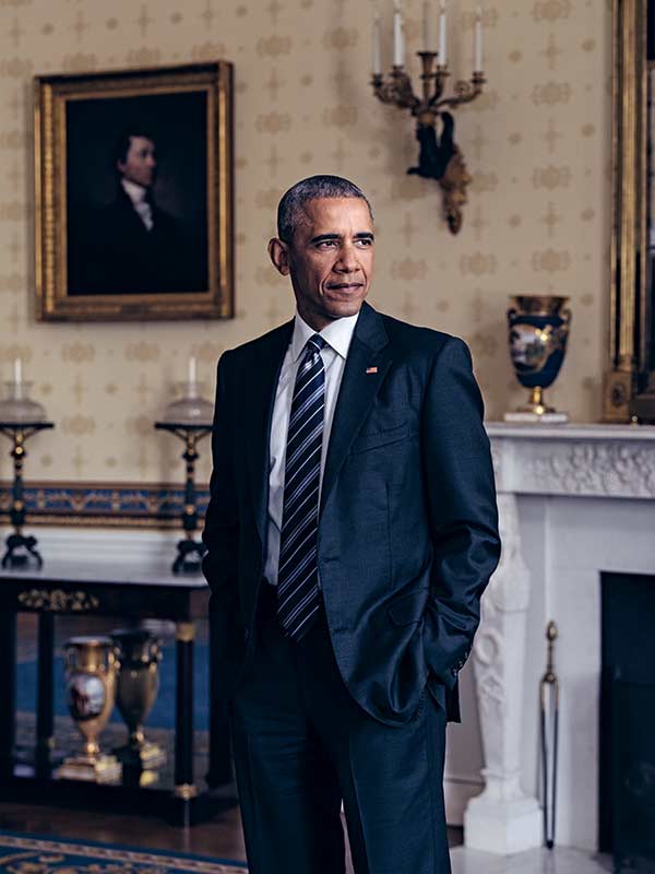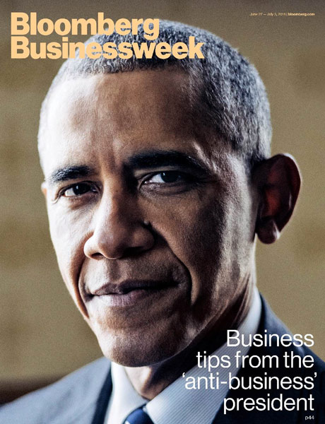 A little after 2:30 p.m. on Monday, June 13, we sat down with President Obama in the Oval Office, which is exactly the range of yellow, taupe, and beige we all know from television but smaller than expected. It’s an old building, after all. Obama offered coffee to the three of us conducting the interview: John Micklethwait, editor-in-chief for Bloomberg; Megan Murphy, Bloomberg News Washington bureau chief; and Bloomberg Businessweek Editor-in-Chief Ellen Pollock. He touched briefly on the mass shooting in Orlando, before quickly switching gears: “All right, let’s talk about the economy.”