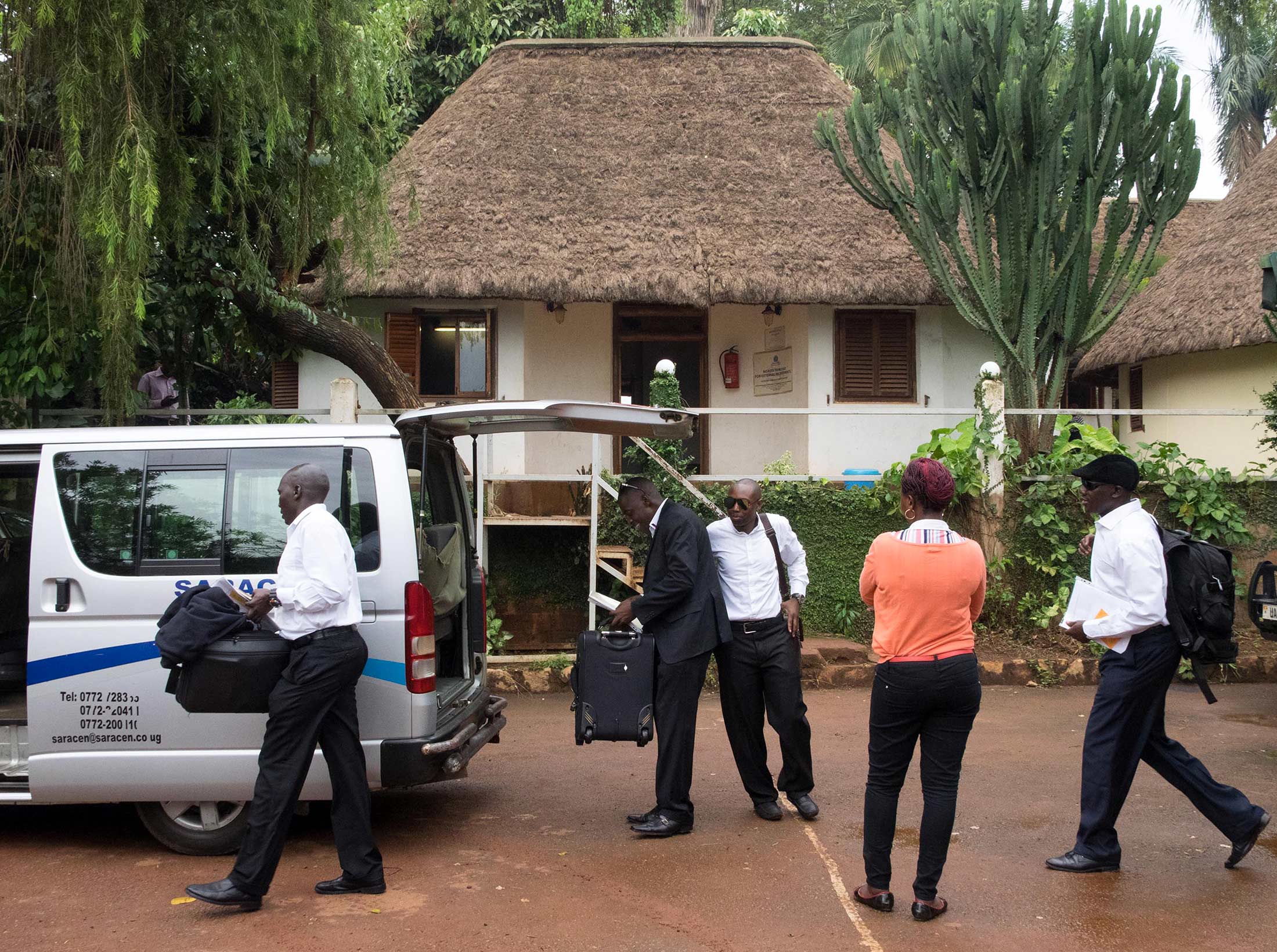 In Iraq, he says, he killed three or four insurgents and was shot four times in the arm and back. His arm is indeed scarred, but the precise details of the incident are impossible to verify. Business is good, he tells me, though it was better during the occupation of Iraq. Matsiko has 300 guards there and in Afghanistan—a figure corroborated by the Ministry of Gender’s External Employment Unit—and several hundred more in Burundi, the DRC, and the UAE. In Uganda itself he has 400 guards—in rumpled blue fatigues, they patrol the hotel where we meet, the country club where I eat, the banks where I withdraw cash, and the guesthouse where I sleep. He protects the United Nations compounds in Kampala and Entebbe, too.