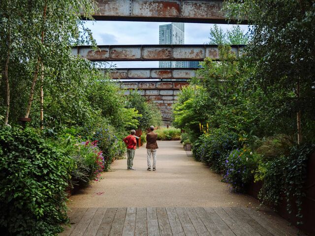These days it seems every city has a rails-to-trails redevelopment à la New York’s High Line, and Manchester is no exception. Its Castlefield Viaduct is a 1,000-foot steel bridge converted into a sky garden flush with native flora, giving the Big Apple’s version a run for its money. It’s the city center’s most compelling green space (there are remarkably few, given Manchester’s industrial past) and an ideal place to survey its future: Dozens of cranes dangling concrete slabs over half-built glass towers are constantly visible behind the raised beds of wildflowers. Down below are the remnants of Manchester’s ancient history: the restored rampart of the Roman fortification of Mamucium, from which the modern city derives its name.