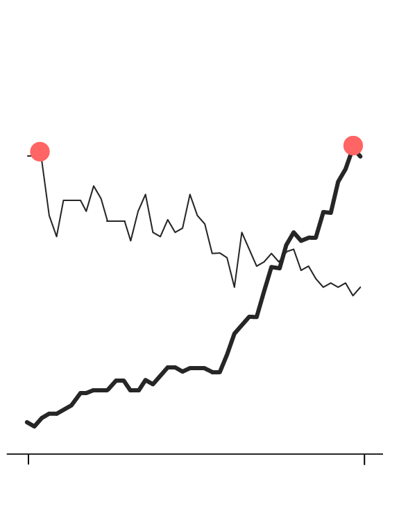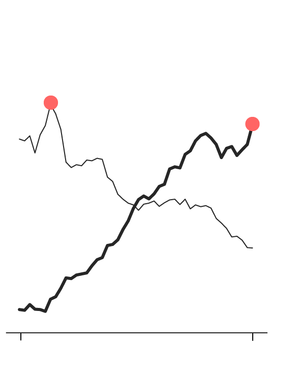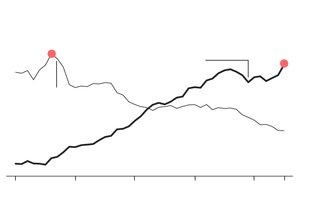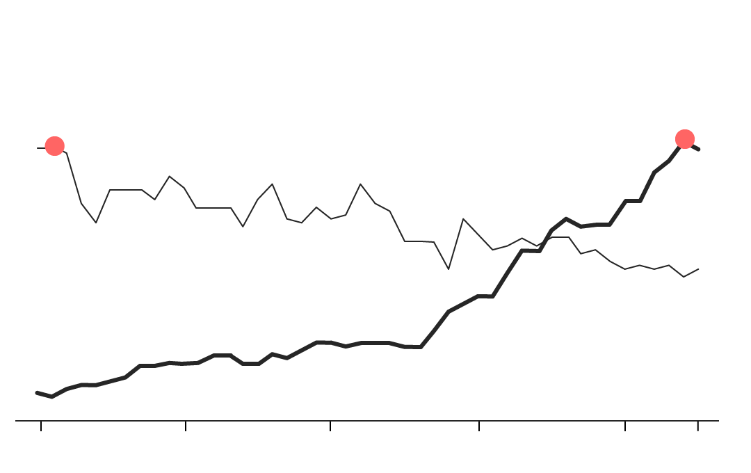 Americans for generations were steak-eating stalwarts. But starting in the mid-1970s, beef was less in favor, while consumption of chicken, the number-three choice after beef and pork, started to accelerate. Their lines crossed in the 1990s, and today the chicken is reaching new heights. So what’s all the clucking about? By the mid-1970s, worries about health risks associated with red meat were entering the public consciousness, with government guidelines suggesting Americans watch their consumption. Meanwhile, chicken production was industrialized. An average broiler hen took 56 days to grow to a market weight of 3.62 pounds in 1970; in 2015, it took 48 days to reach 6.24 pounds, according to the National Chicken Council. That drove down its cost relative to beef, and consumers took notice.