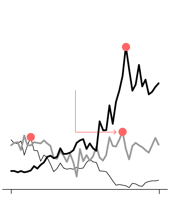 Most and least percent difference between peaks and lows