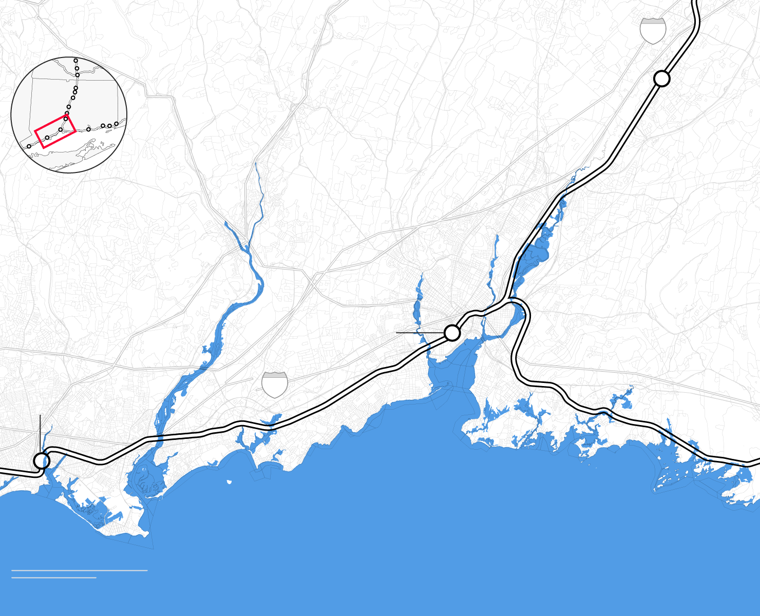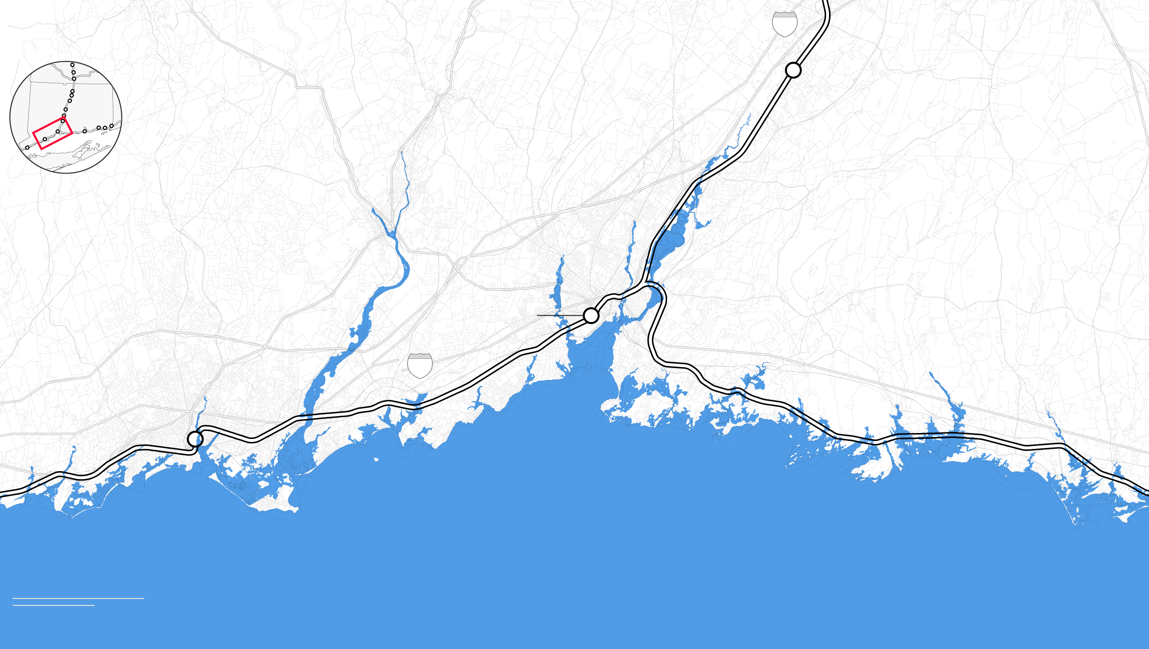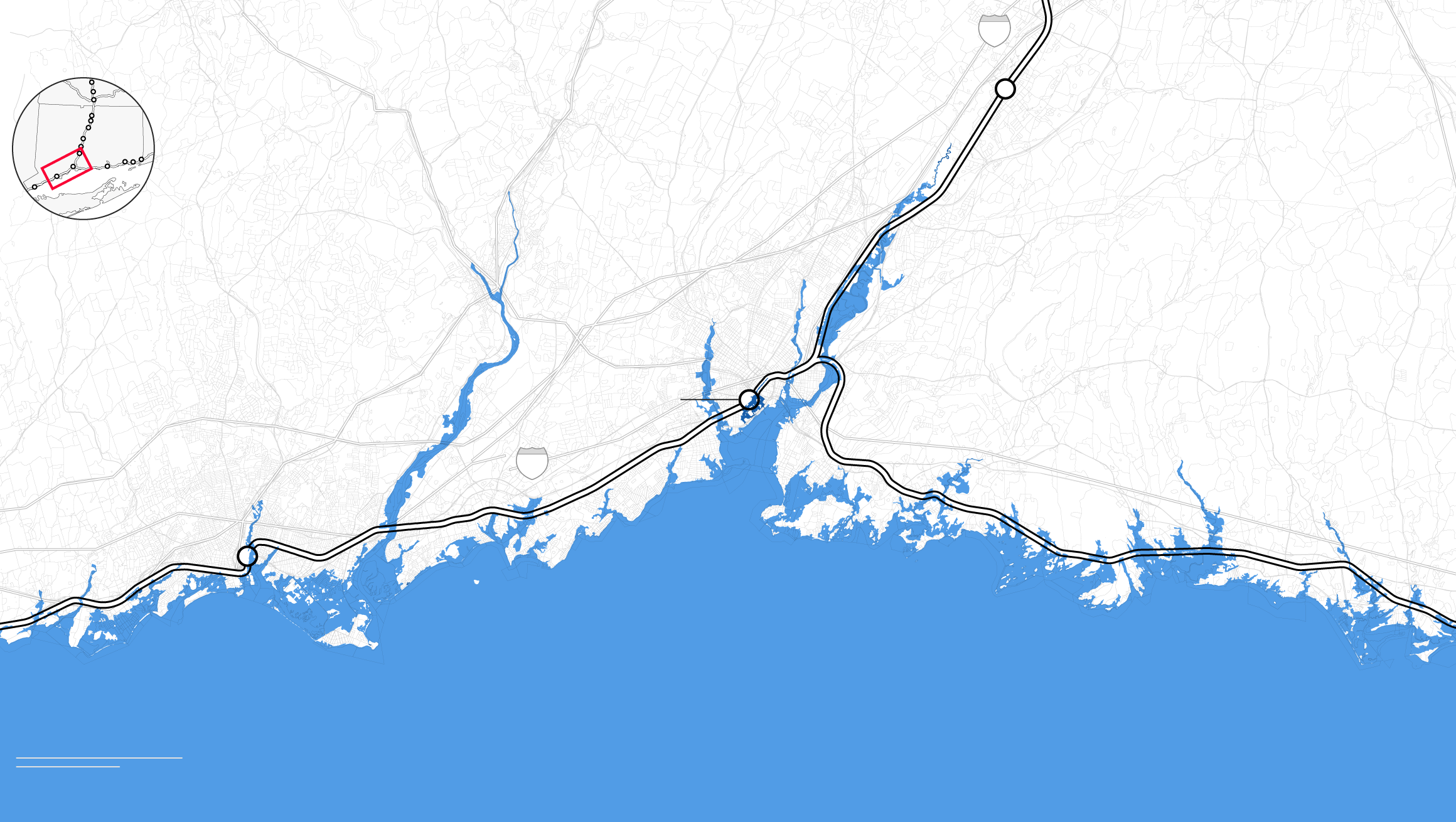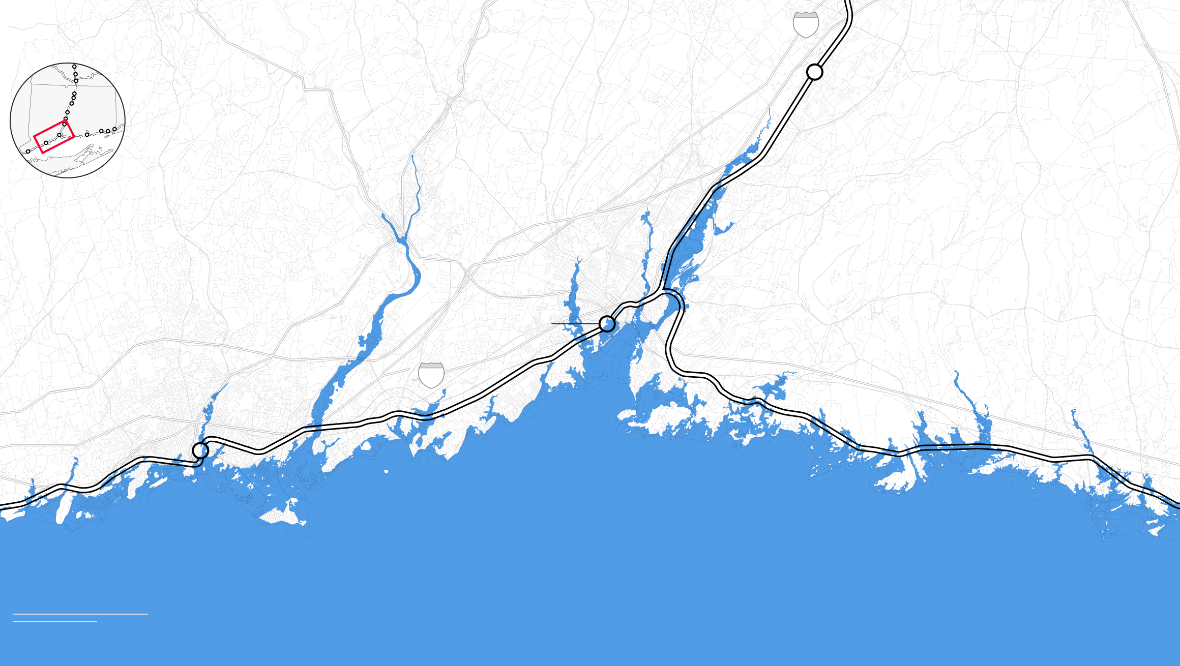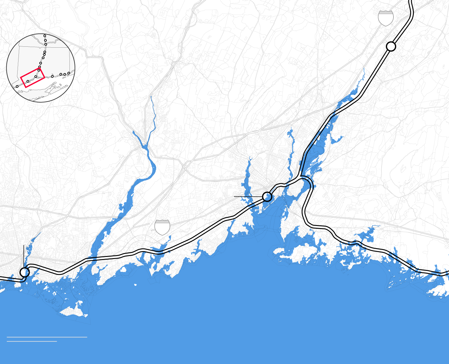 By the middle of this century, climate change is likely to punch a hole through the busiest stretch of rail in North America. Parts of Amtrak’s Northeast Corridor route, which carries 12 million people each year between Boston and Washington, face “continual inundation.” Flooding, rising seas, and storm surge threaten to erode the track bed and knock out the signals that direct train traffic. The poles that provide electricity for trains are at risk of collapse, even as power substations succumb to floodwaters. “If one of the segments of track shuts down, it will shut down this segment of the NEC,” warned members of Amtrak’s planning staff. “There is not an alternate route that can be used as a detour.”