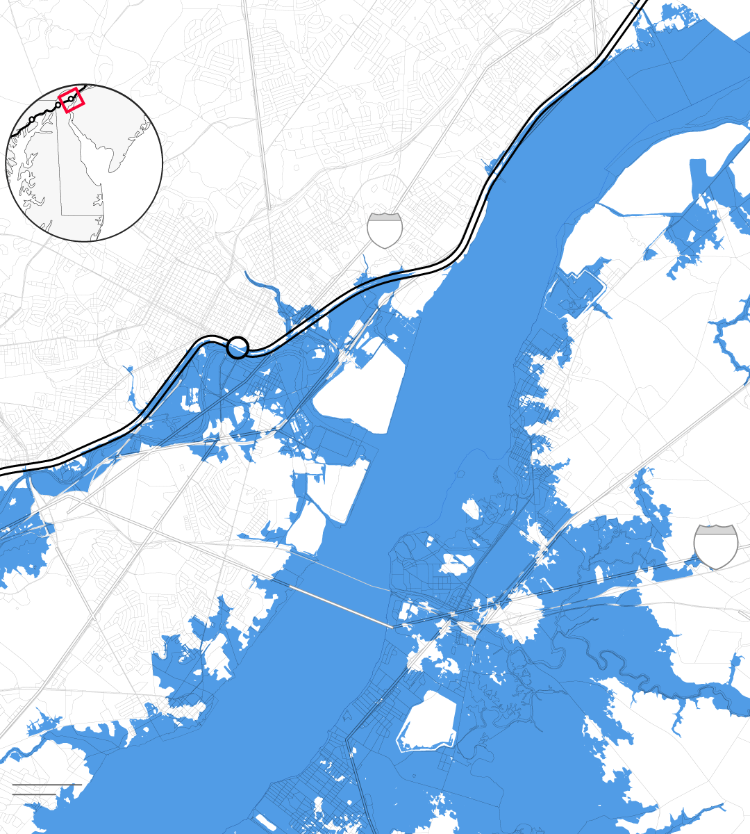 On a recent afternoon near Wilmington, Del., the danger already seemed imminent. North of the city, the distance between the tracks and the Delaware River was alarmingly narrow, even at low tide. Closer to downtown, puddles dotted the West Yard Substation, which powers this section of rail, as well as the Wilmington maintenance yard, one of the few in the country that can repair electric locomotives. Only a slender cobblestone footpath separated Amtrak’s Consolidated National Operations Center, which monitors and controls traffic along the corridor, from the edge of the Christina River. The single access road leading to Amtrak’s only training center for engineers was underwater on a day with no rain.