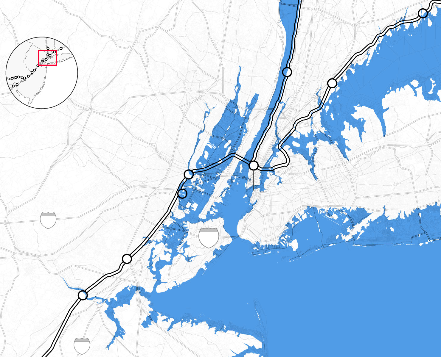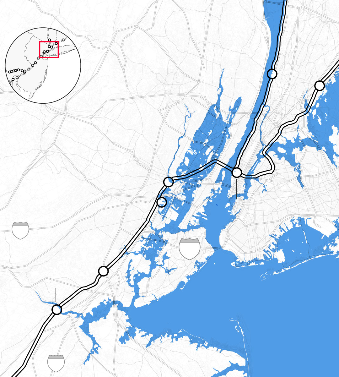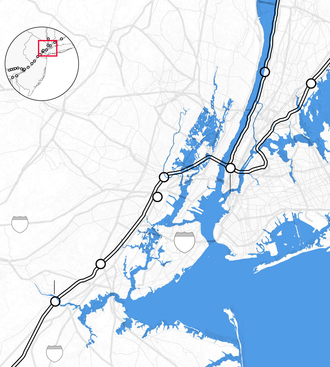 Christina Leeds, an Amtrak spokeswoman, said in an email: “Elevation or relocation of the infrastructure is likely to be expensive, disruptive, or impractical, and given the current levels of federal and state funding for Amtrak and the Northeast Corridor, well beyond our means.” She added that the company already faces “$40 billion worth of pressing—largely still unfunded—basic state-of-good-repair risks.”