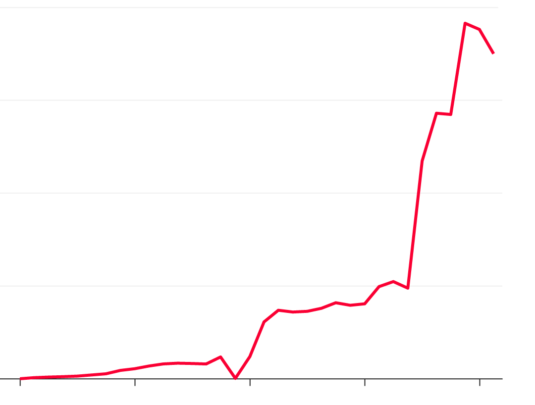 Then, of course, there’s Tesla’s stock. Issuing new equity typically leads to dilution for existing shareholders—but not Musk. He has maintained control by regularly purchasing more shares and currently owns more than 33 million, or 20 percent of the company. The next largest shareholder, Fidelity, holds a 10 percent stake.