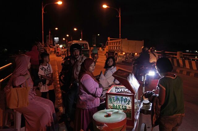 People gather at a food stall on Manggar bridge in Balikpapan. What was once one of the country’s most remote major cities could become the gateway to the new capital.