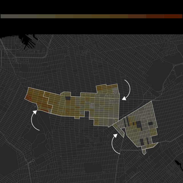 In parts of the city that are historically segregated by income and race, the mobility gap can be found mere blocks apart. For instance, the Queensbridge Houses public housing complex, which is in one of the poorest areas of the city, is considerably farther along the path back to normal than the high-rise clusters of the nearby Long Island City waterfront, with its wealthier White and Asian populations.