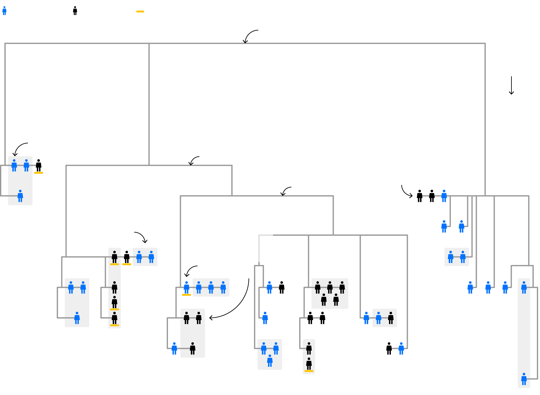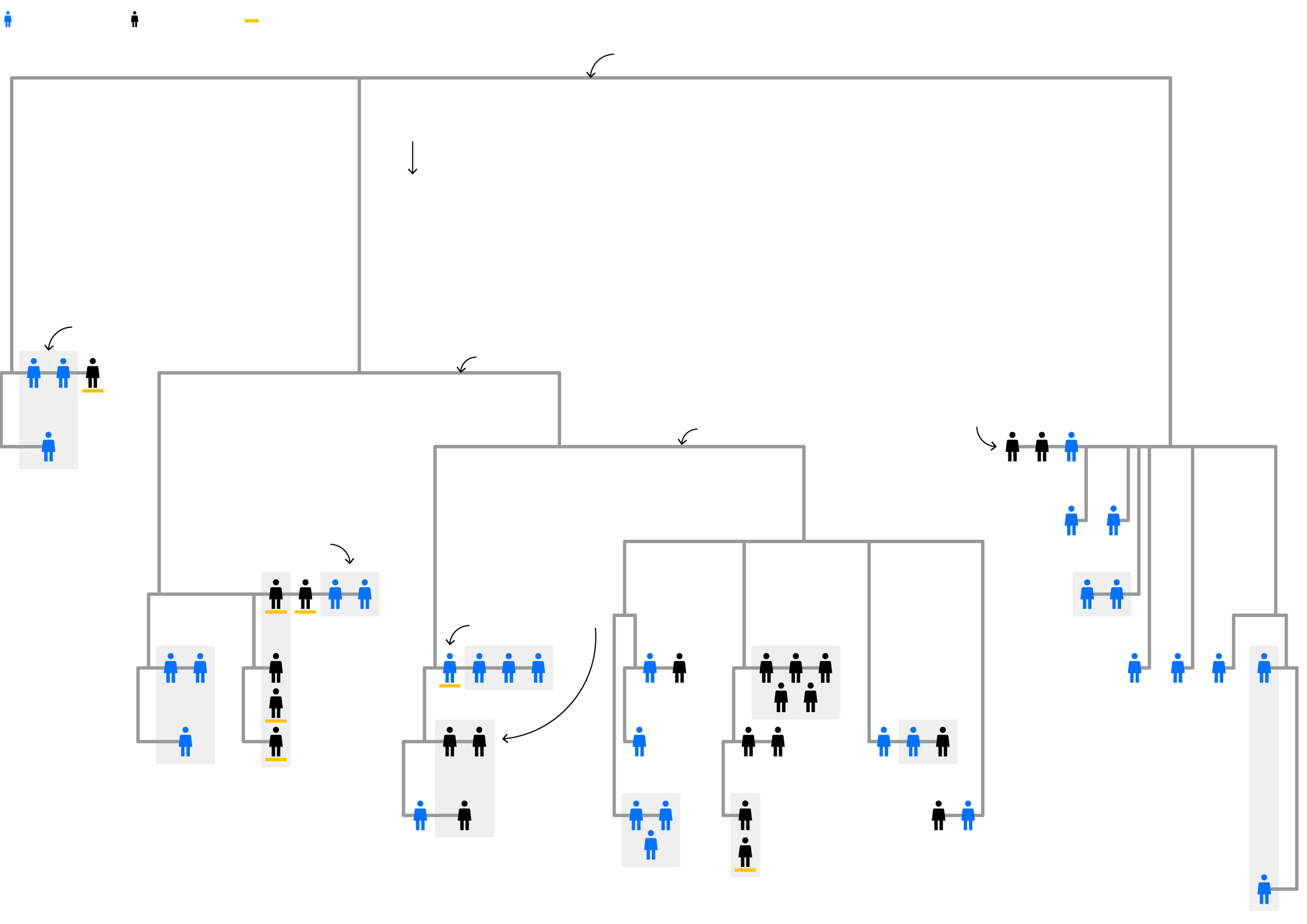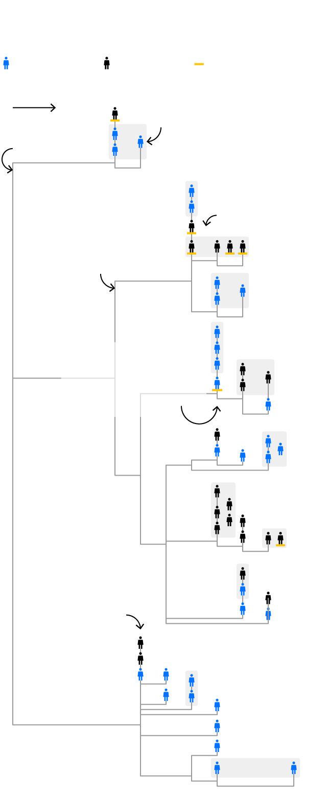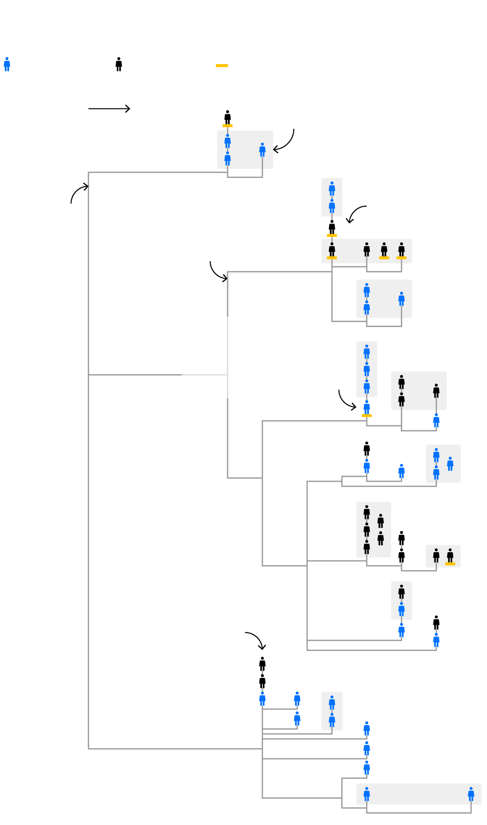 Simplified family tree of Covid-19 strains found in the Mission District, San Francisco