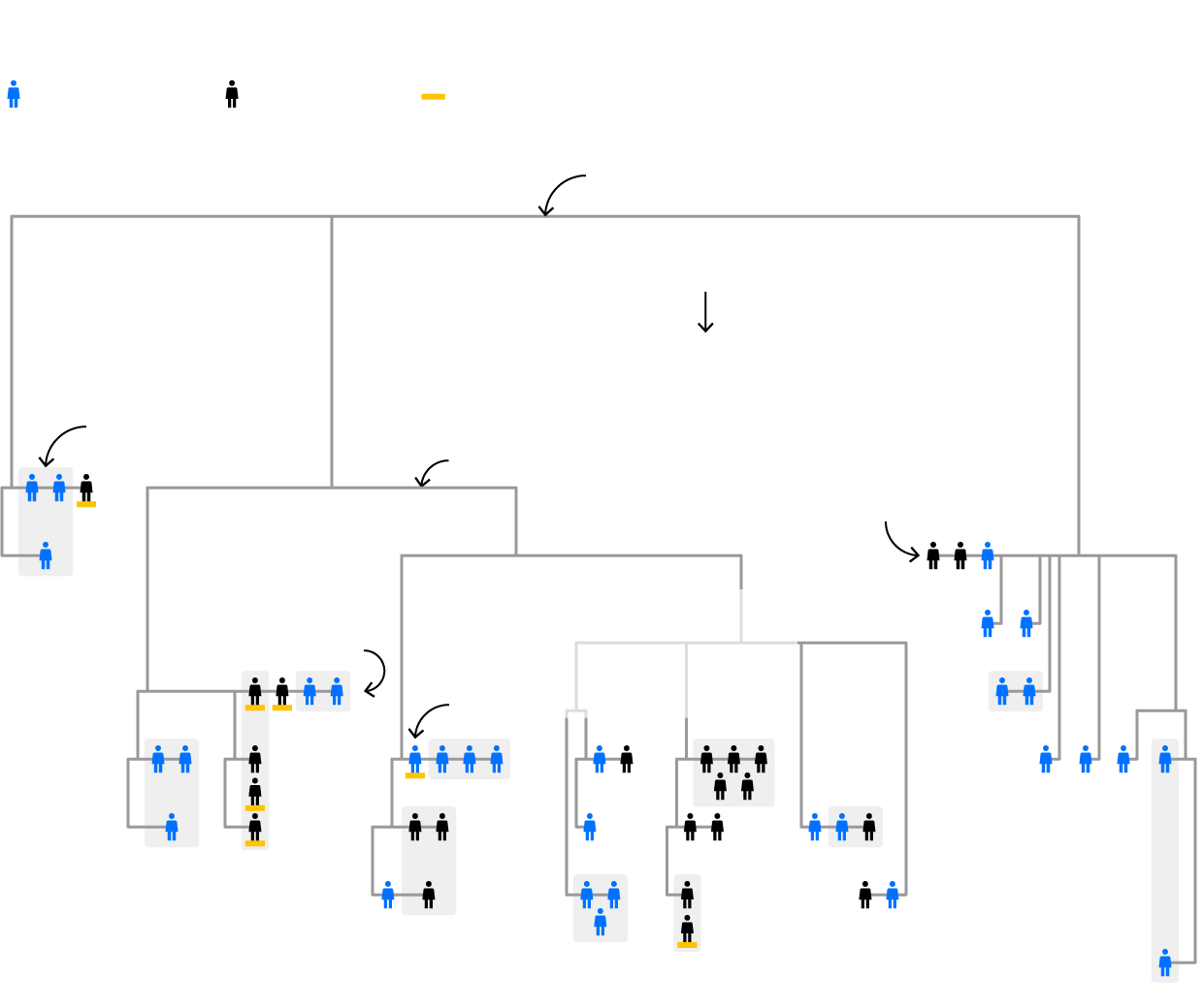 The starting point for the diagram is not in the San Francisco neighborhood but in Wuhan, where the virus originated in early December. Zero means zero mutations. Drop in on any cluster of figures in the chart and you begin to see stuff that’s nearly impossible for virus hunters to see with the naked eye. Look at the household with the middle annotation. Three people in the same household were infected with the same virus. No big news there. One of them likely gave it to the others.