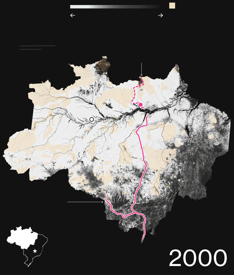 About 95 percent of all deforestation takes place within 50 kilometers of the BR-163 and the other highways that were sliced through the rainforest, according to Yale’s Global Forest Atlas.
