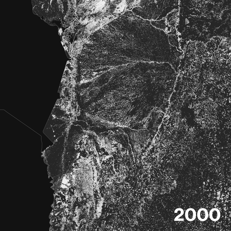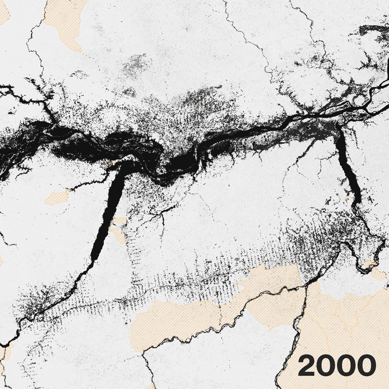 Tree loss in the equatorial forest from 2000 to 2016
