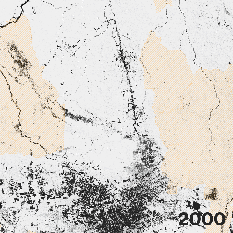 In some areas, the damage has been done. Efforts to build roads through the forest have opened up large swaths to exploitation. Satellite images of a new highway through the Amazon show how fast the land use changes from primary forest to agricultural land once logging companies and farmers gain access.