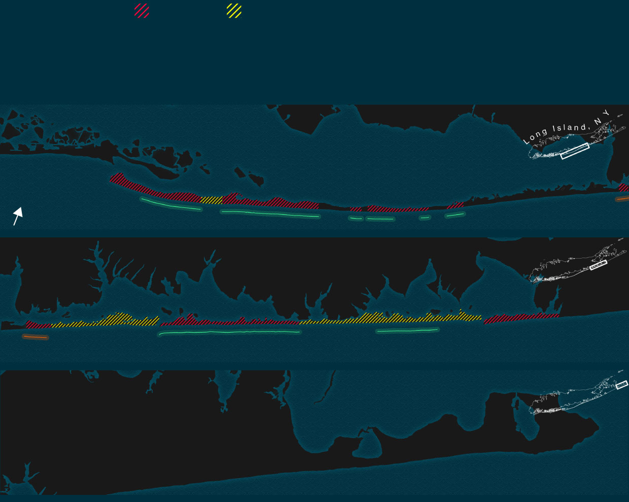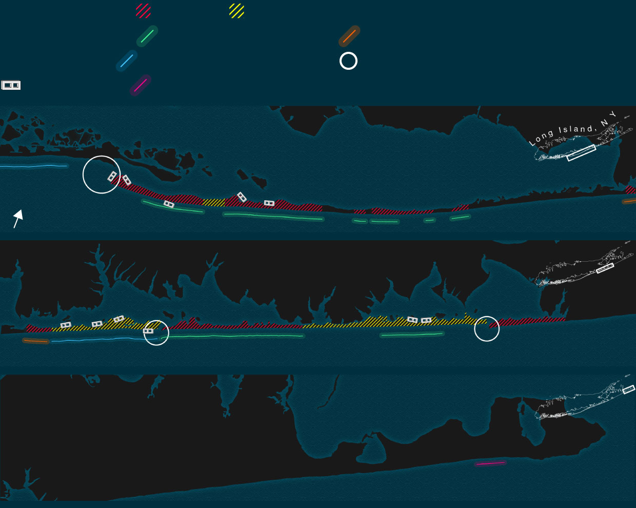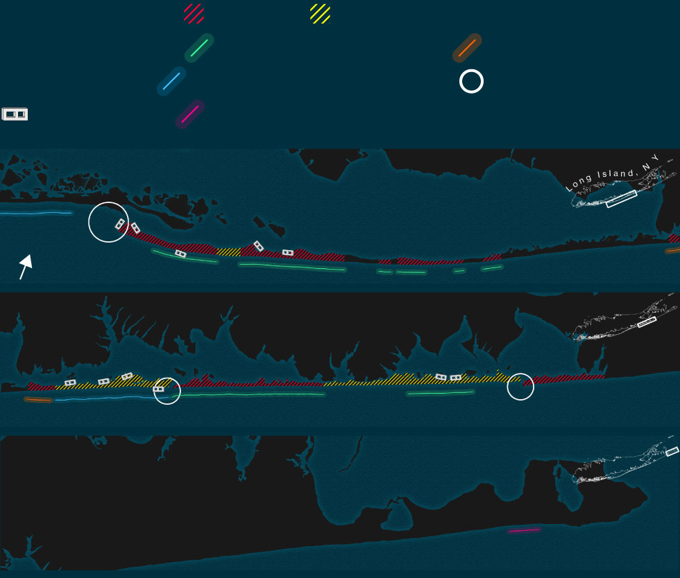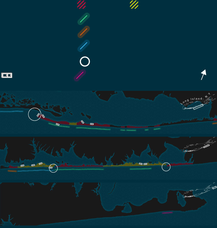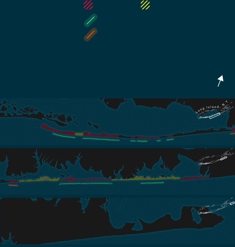 As FIMP moved ahead, jetties became more important than dunes. The project, a joint effort by the Army Corps, the state, and Suffolk County, quickly grew contentious because of a dispute over where to put the first jetties.
