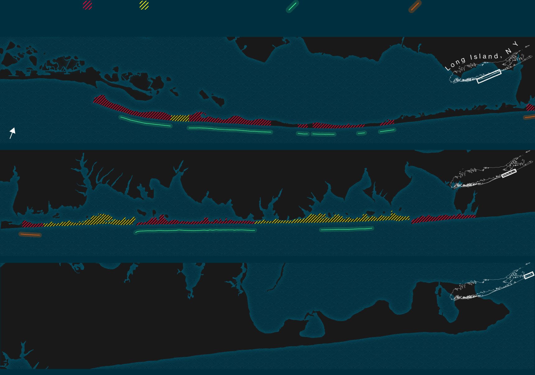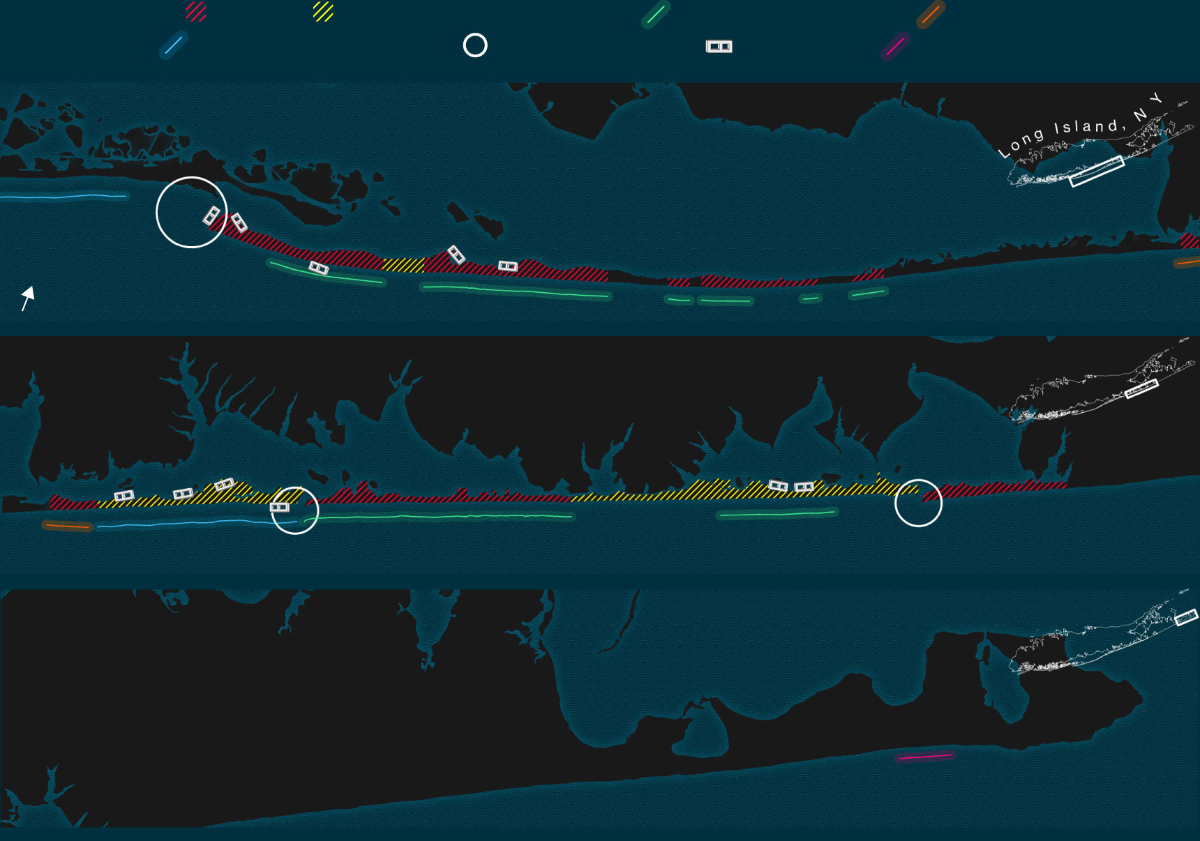 Yet there’s a concentration of efforts in the Hamptons, federal and otherwise, that make it the most vivid place to watch the process of muscular coastal defense unfold. It’s also one of the best places to glimpse early climate retreat. Southampton and East Hampton are among the towns using public funds to buy up low-lying homes, letting the sea reclaim the land. Along Dune Road, a narrow strip where million-dollar homes sit atop dunes, there have already been buyouts. This same stretch is where much of FIMP’s work in the Hamptons is concentrated.