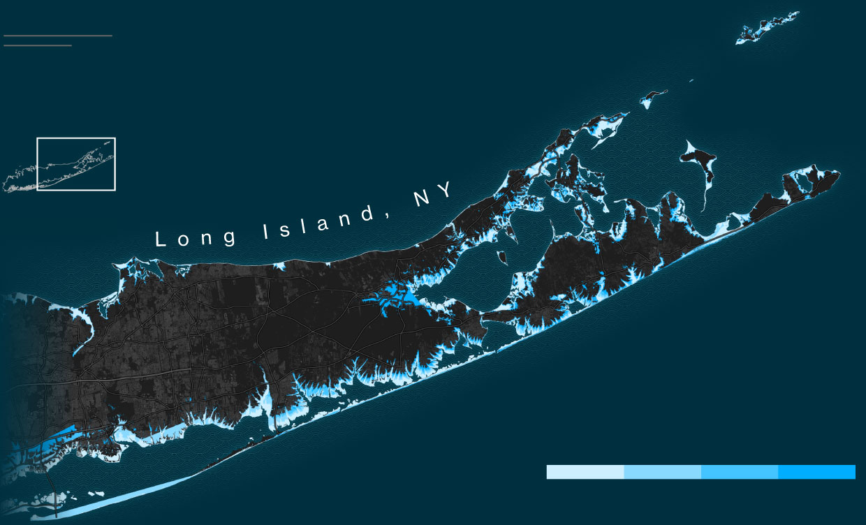 Coastlines have always been unruly. Currents carry massive amounts of sand in and out, leaving beaches unstable. Storms drive water across sandy reaches and open new inlets in their wake. Rising temperatures heighten the potential for storms to reshape the land. Glaciers melting far from New York’s coastlines are lifting sea levels. The water around Montauk and Ditch Plains Beach has risen about 10 inches since 1950, and it goes up another 0.13 inch every year.