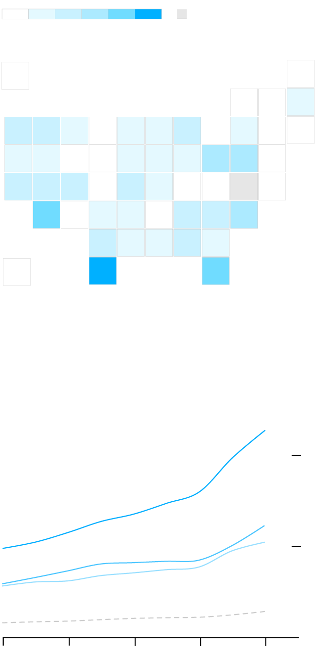 Between 2016 and 2020, federal data show, US production of rifles fell 35%, as lower receivers increased 60%. Some 700 factories reported making 1.3 million lower receivers in 2020; all but 12 were small manufacturers, according to a Bloomberg analysis of federal data. Their products serve as building blocks for assault rifles, making them attractive to hobbyists but also creating a way to circumvent state restrictions. Since 2010, sales increases for lower receivers — as reflected in rising numbers of FBI background checks on their buyers — have been particularly steep in states with tough gun laws. Connecticut has seen a 10-fold increase; New York and New Jersey had increases of 400%.