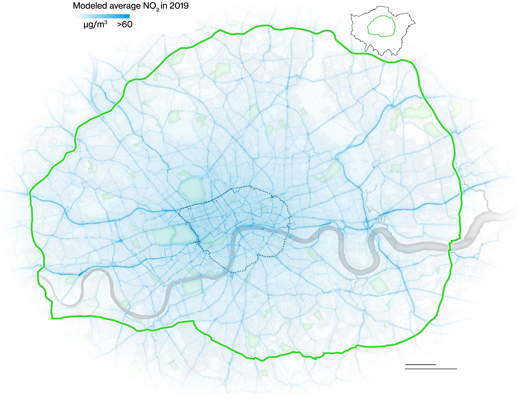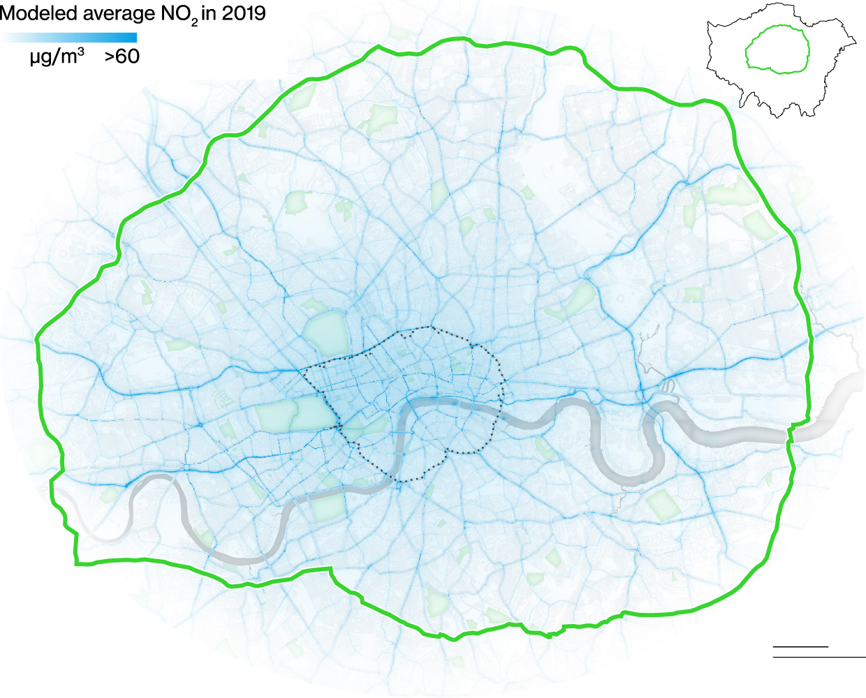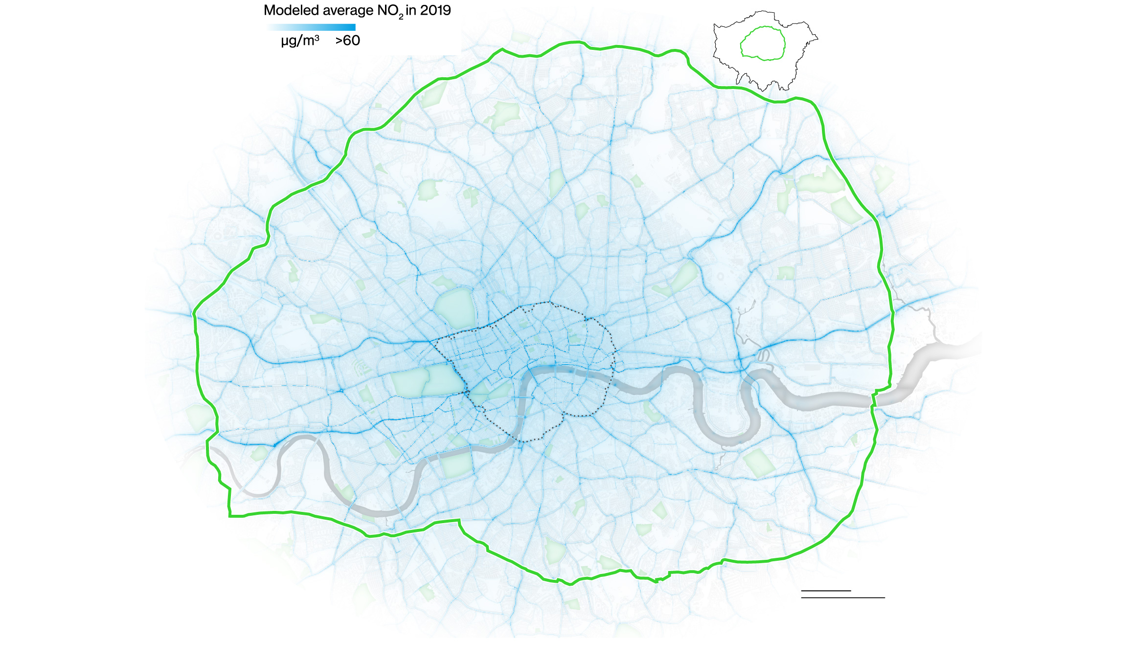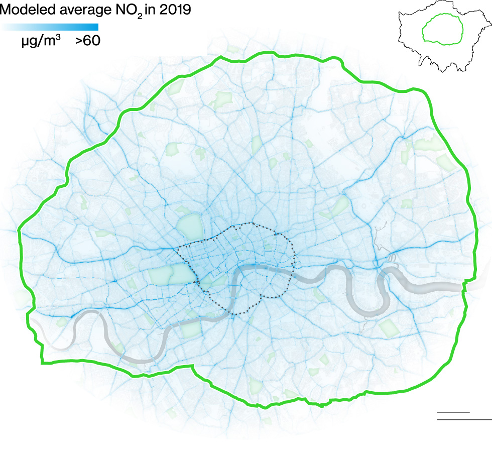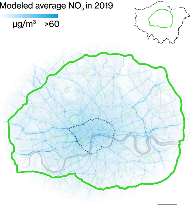 Many Londoners now live with less dangerous levels of pollution. Average concentrations of PM2.5 in London are approximately 19% lower than in 2016. Greater strides have been made on tackling NO2. The number of Londoners living in areas exceeding World Health Organization’s legal limits for NO2 dropped from 2 million in 2016 to 119,000 in 2019. (The health guidelines have gotten tougher since then, so once again it’s likely that no one in London—as well as in many other cities worldwide—now lives with safe 2 levels.)