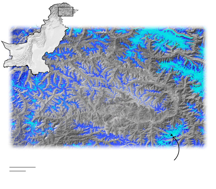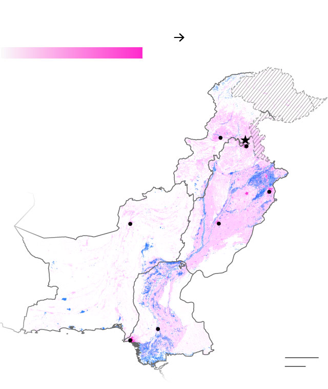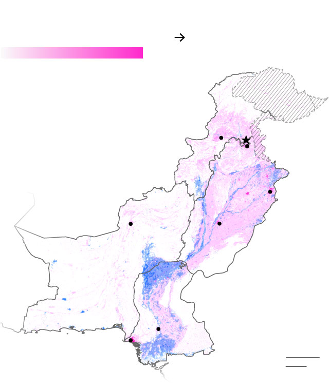 South Asia’s glaciers began melting more intensely in the 1980s, with increasing run-off and, in some places, flooding from bursting glacial lakes. Glacier mass in the region is set to shrink by as much as half by the end of the century while the number of lake outbursts triples, according to a UN Environment Program report released in April. In northern Pakistan alone, more than 3,000 glacial lakes have formed in recent years and, based on one estimate, nearly three dozen are vulnerable to sudden bursting.