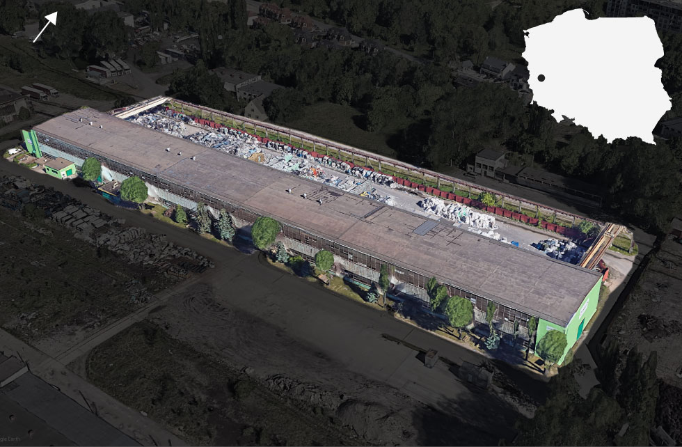 The tracker we hid inside the Tesco carrier bag stopped working shortly after arriving in Zielona Gora, and we assumed it had been lost. To find out more required some detective work. On a snowy January morning, we followed an unmarked red truck leaving the Eurokey warehouse fully laden to see where it was going. The vehicle rumbled north, past the outstretched arms of the Jesus statue at Swiebodzin. Then, instead of turning west toward Papier-Mettler’s recycling plant, it headed east.