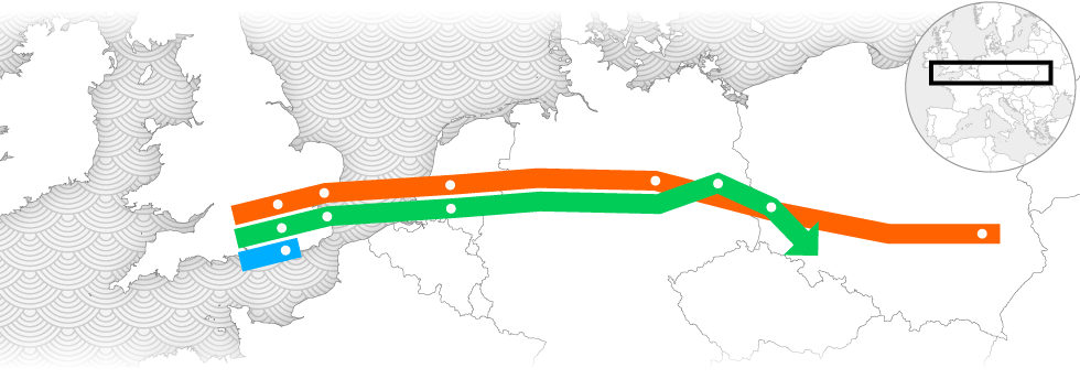 The two other trackers, concealed inside the lentil-puff pouch and the Tesco-branded bag, took different routes to giant out-of-town logistics depots, where they were loaded onto trucks and driven to Harwich International Port on England’s east coast. There the trackers boarded ships bound for continental Europe. After arriving in Rotterdam, both devices struck east, traversing Germany within 24 hours before entering Polish territory and coming to a halt within a few feet of each other.