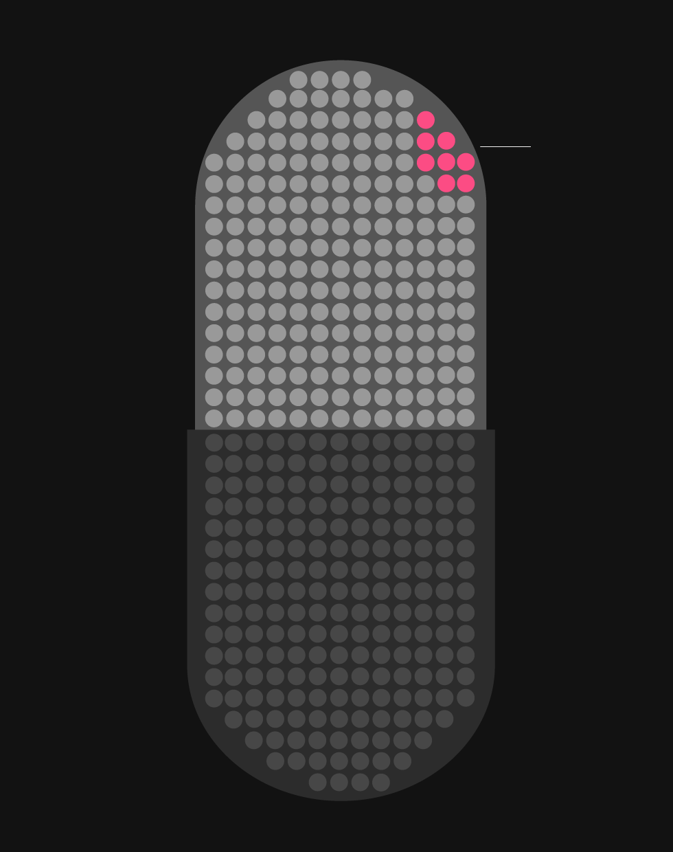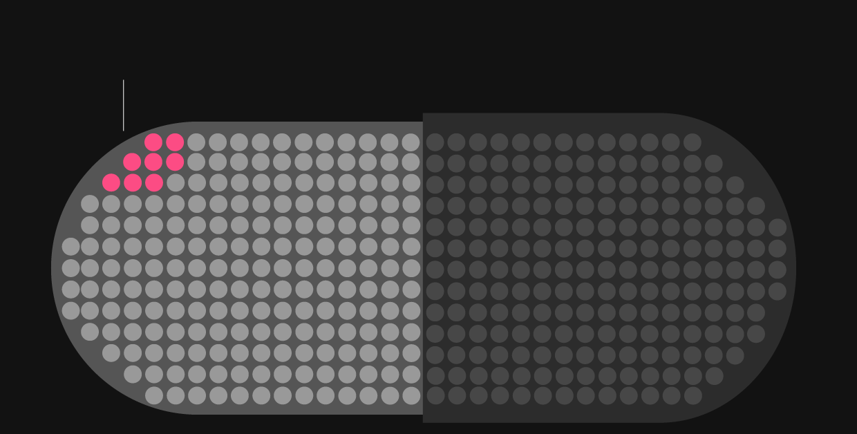 There are 2,447 dots. They take up five sheets of printer paper.