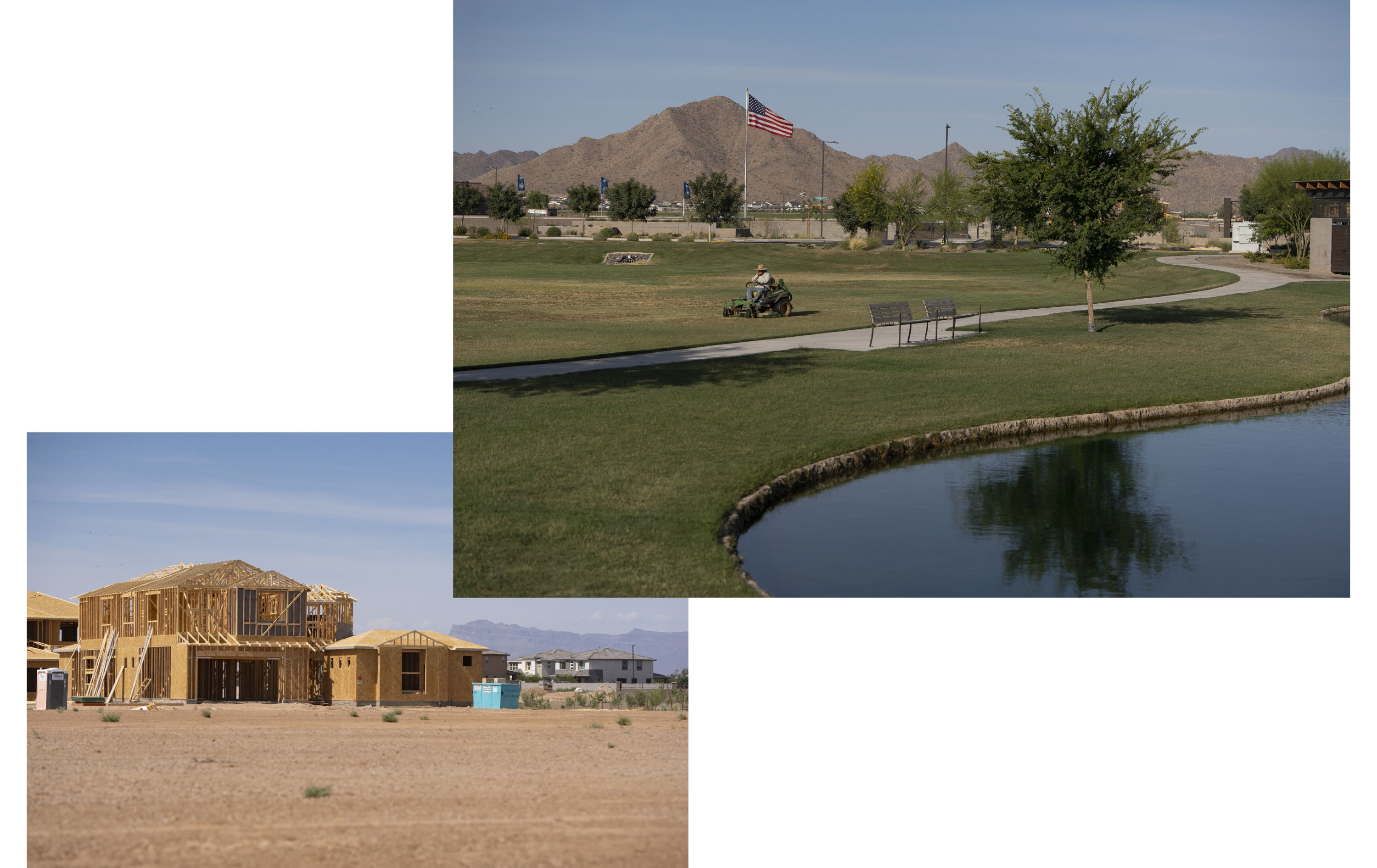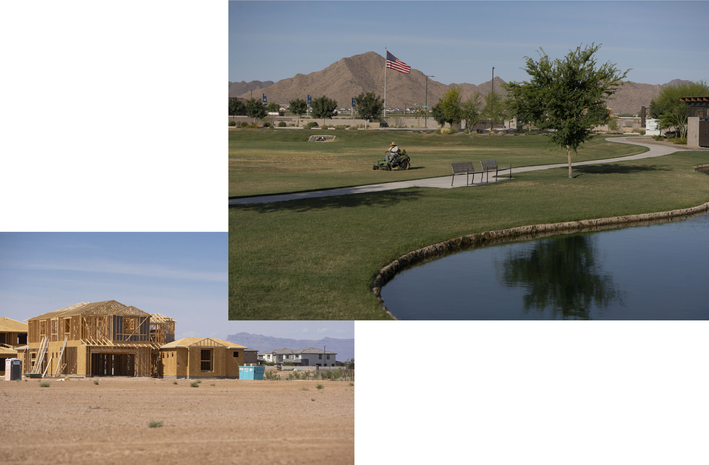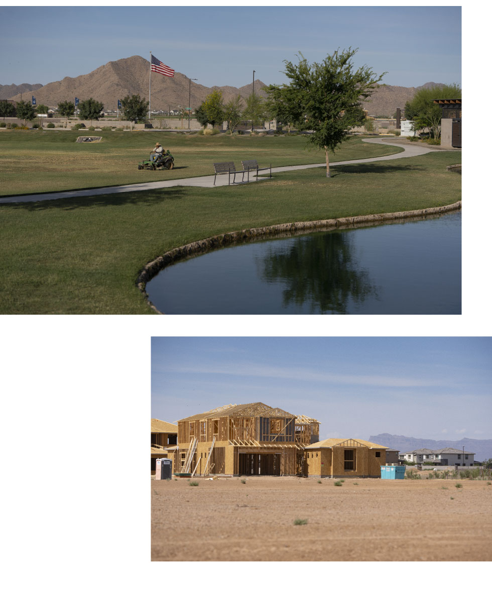 With sand-colored houses overlooking an ornamental lake and a vast pool complex, Harvest in Queen Creek, Arizona, is typical of the developments that have multiplied on the fringes of Phoenix in recent years. The homes abutting the Sonoran Desert start at $400,000 and are being snapped up by young families and retirees even as mortgage rates rise.