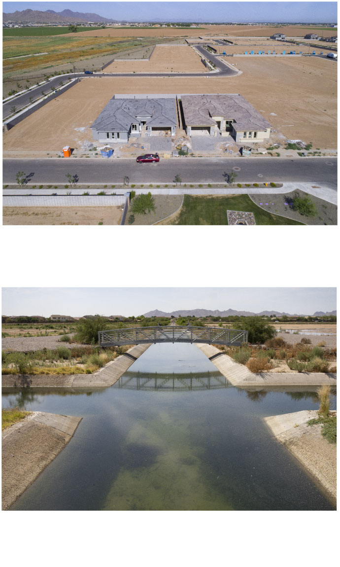 Since then the population in and around Phoenix has surged to almost 5 million people. By 2024 more than 1 million people in 380,000 households will rely on groundwater districts, severely taxing it in places. And up until the state’s water-scarcity decree earlier this month, the forces behind the building boom chose to minimize the undeniably deepening drought. West of the city in booming Buckeye, for example, more than two dozen developments are in the pipeline but not yet built.
