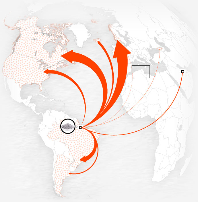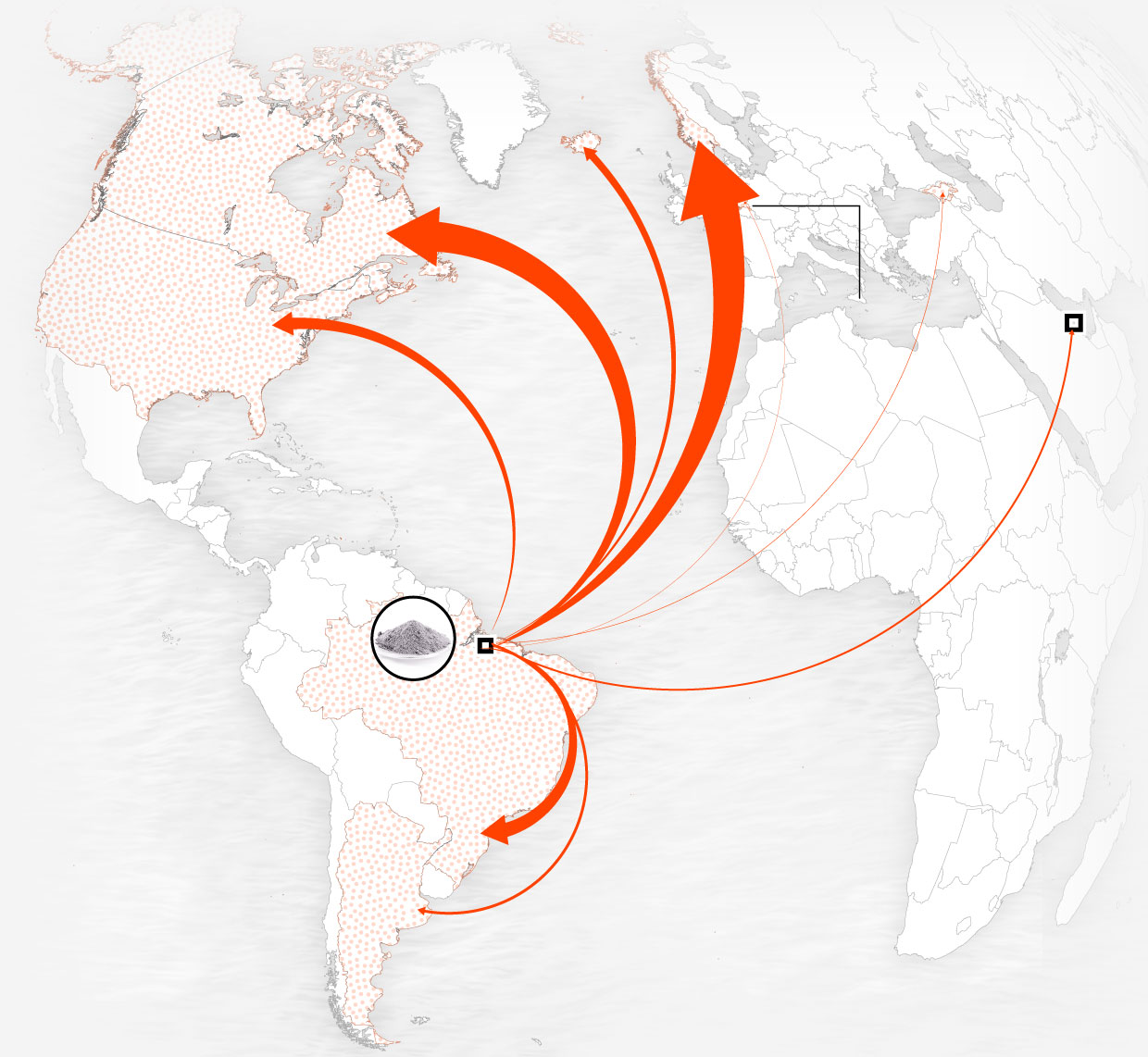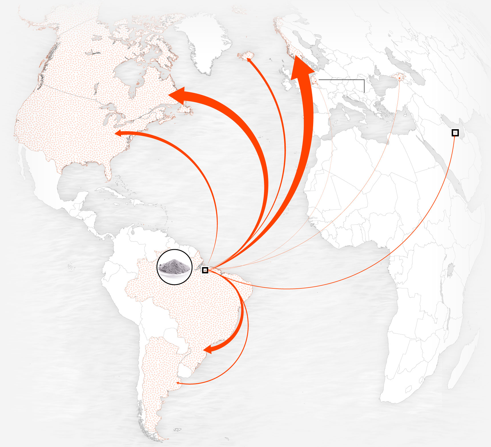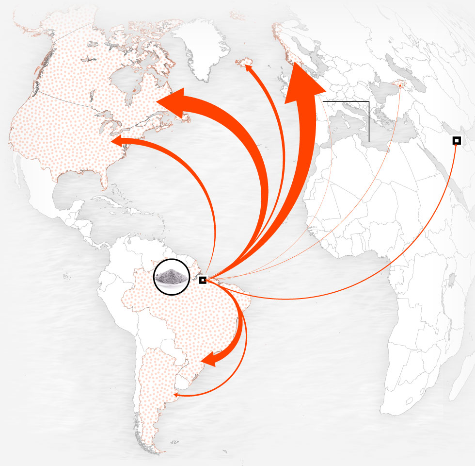 That’s how Amazon-origin alumina ends up in the metal used by US auto-parts makers, as well as in beer cans, airplanes and construction materials. Along the way, it’s mixed with alumina from other refineries, including Alumar, making it difficult to say how much Brazilian bauxite or alumina from Alunorte is in any particular part.