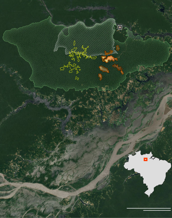 Even with a drainage system that directs runoff to tailings dams, the existence of strip mines in a rainforest at a higher elevation than nearby communities jeopardizes places like Saracá. “Everything flows back to the river,” says Raimundo Nelson da Silva, Guilherme’s brother.