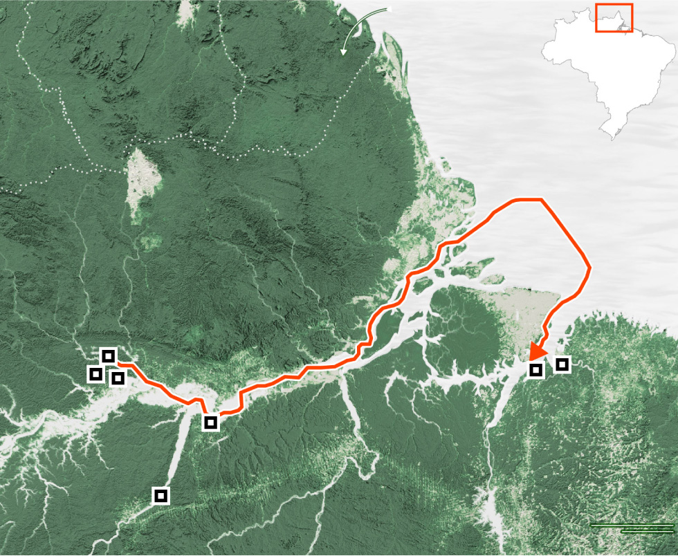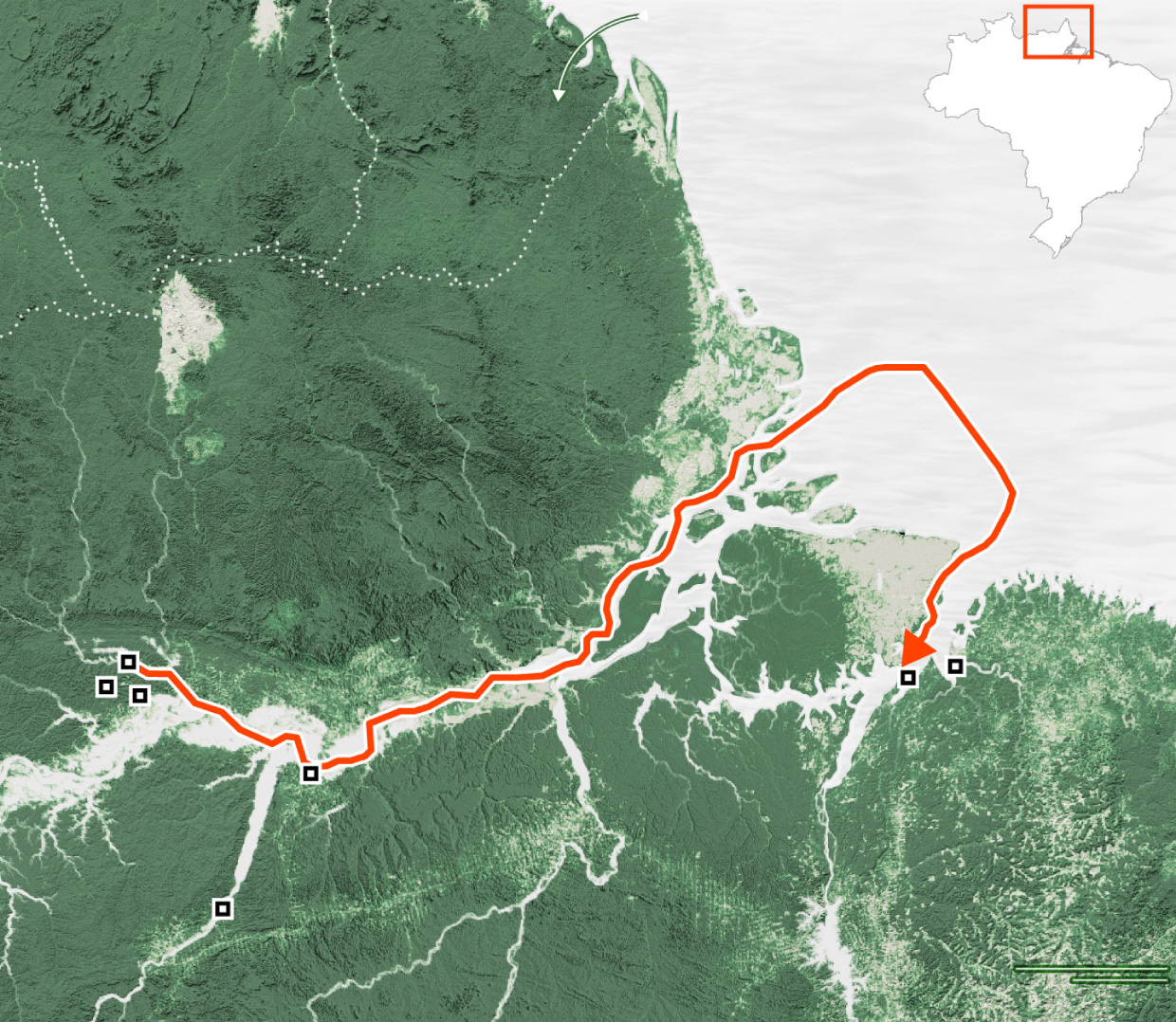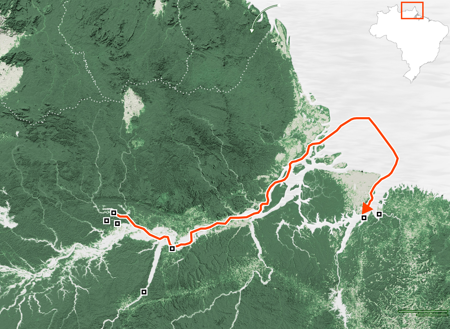 The two-day trip down the Amazon to Alunorte is a journey through infinite shades of green: islands of drifting flora; banks lined with tall açaí and palm trees, wild rubber, Spanish cedar and thousands of other species of vegetation; vines dangling their swaying tendrils into the water. Egrets stand rigid along the river’s edges, flycatchers dart and weave, and clusters of white cows graze in occasional clearings. The Amazon widens and narrows and widens again, becoming miles across at some points. Settlements with blue-and-white churches dating to missionary expeditions break up the flow. Sunsets and sunrises glow amber and crimson in the humidity, which sometimes whips into sudden, pelting rainstorms.