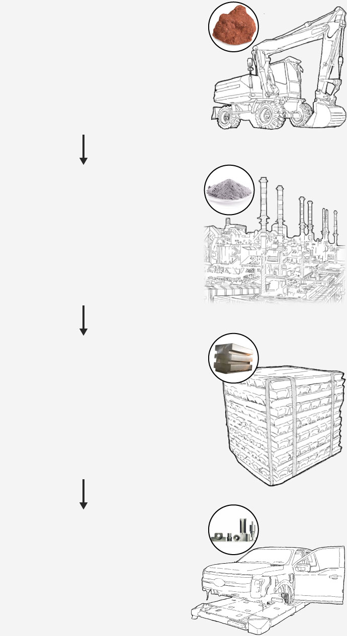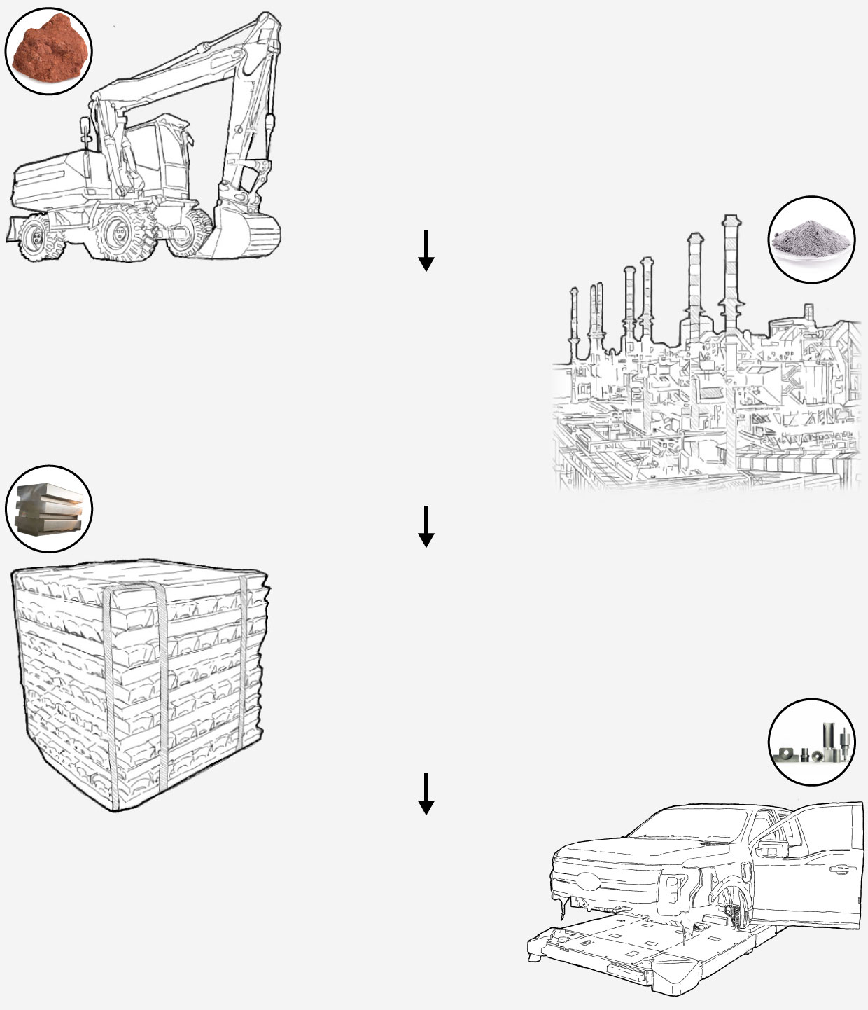 Factories take the aluminum and turn it into a wide range of parts, including exterior panels and tubing for frames