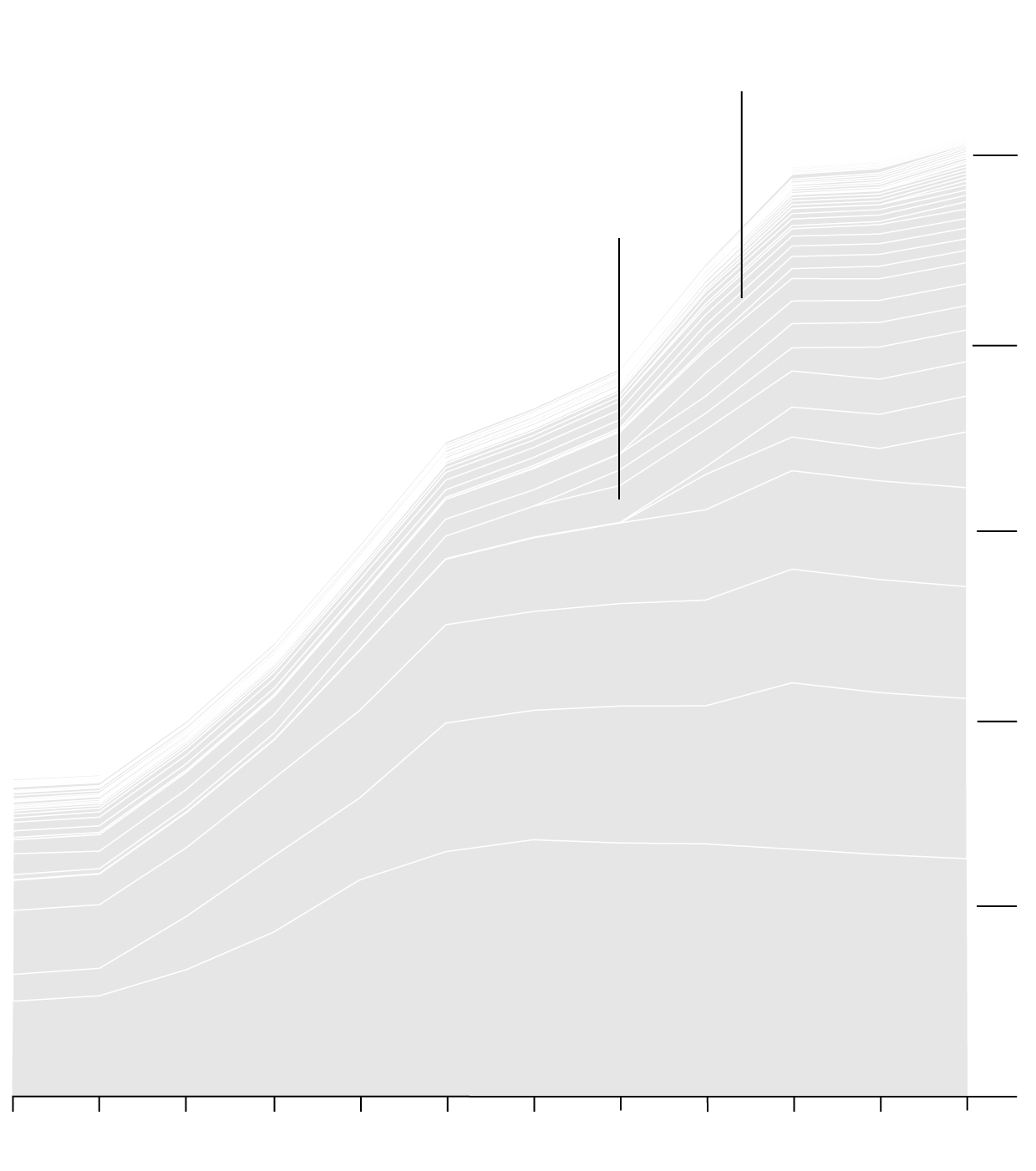 Losses on bonds are a risk whenever rates go up, but banks’ holdings were bigger than usual in 2022. All that cash the Fed and the government pushed into the economy quickly found its way into the banking system, giving lenders trillions of dollars to invest. SVB’s domestic deposits, for instance, rose more than 150% from the end of March 2020 through the end of 2022.