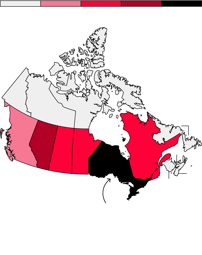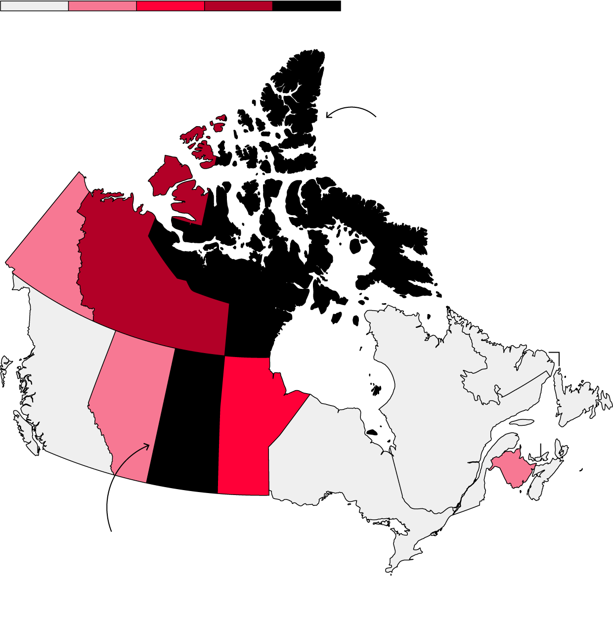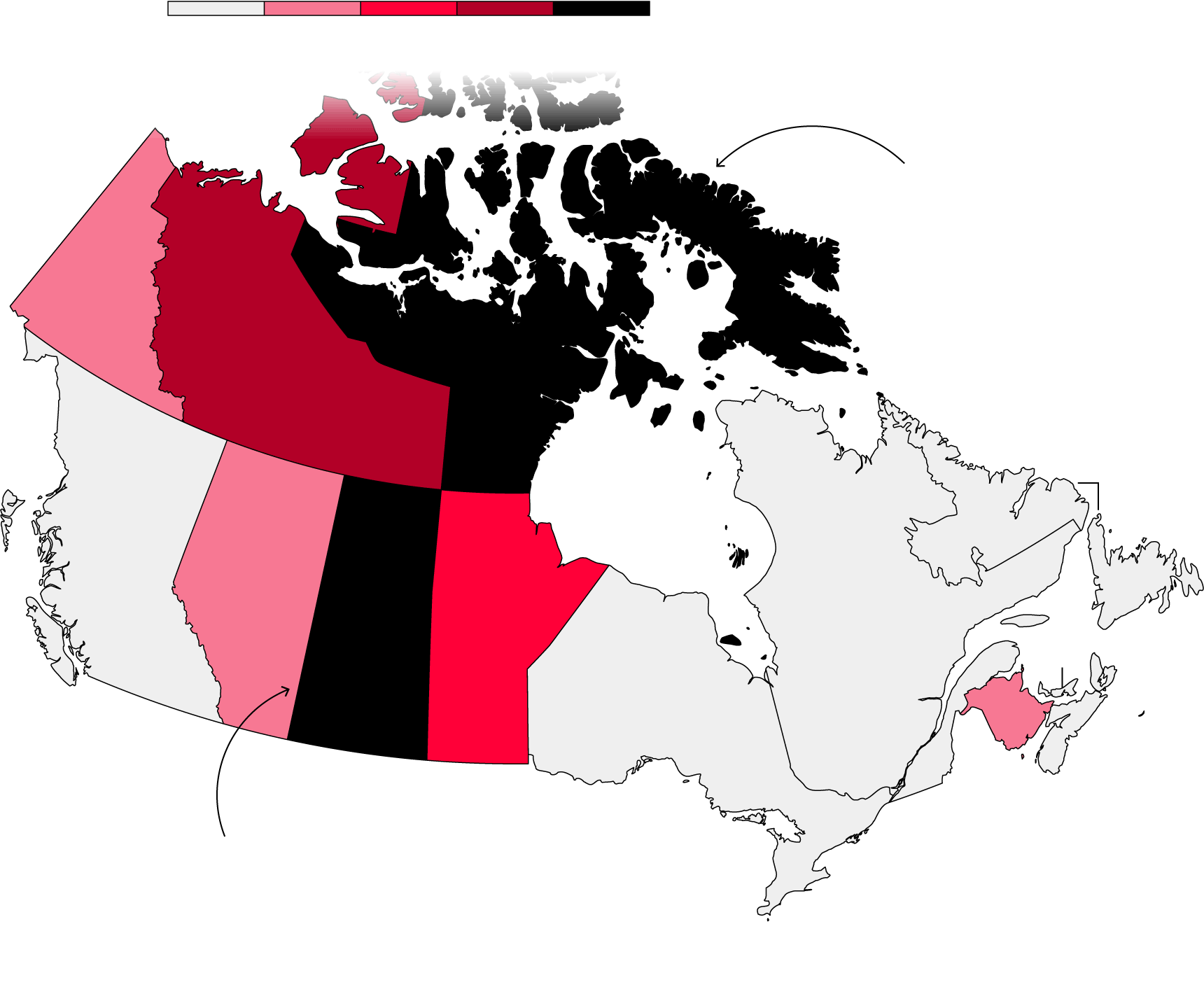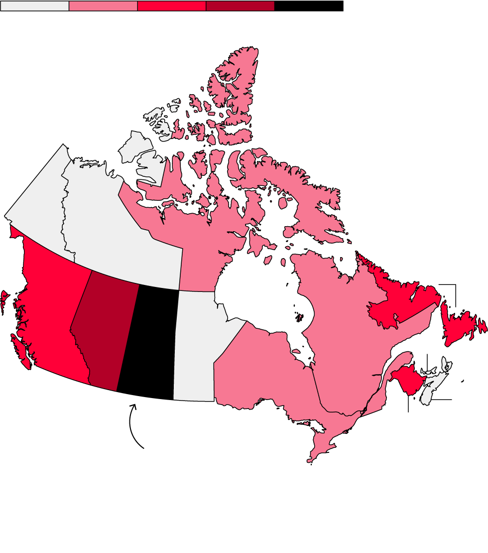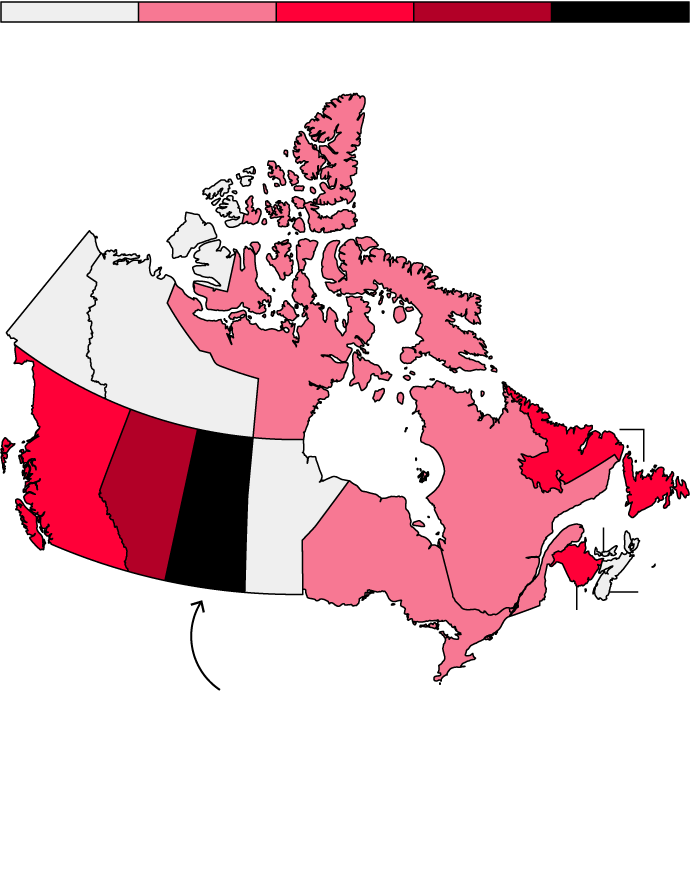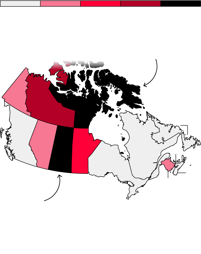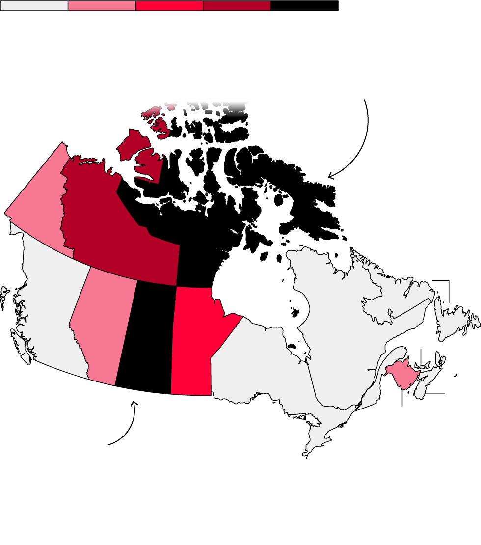 Nunavut, a sparsely populated territory where many Indigenous people practice hunting traditions, ranks second.
