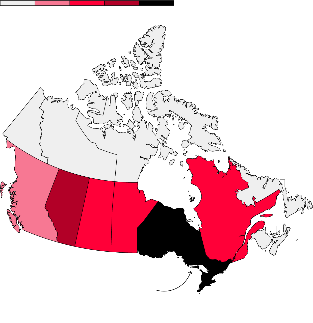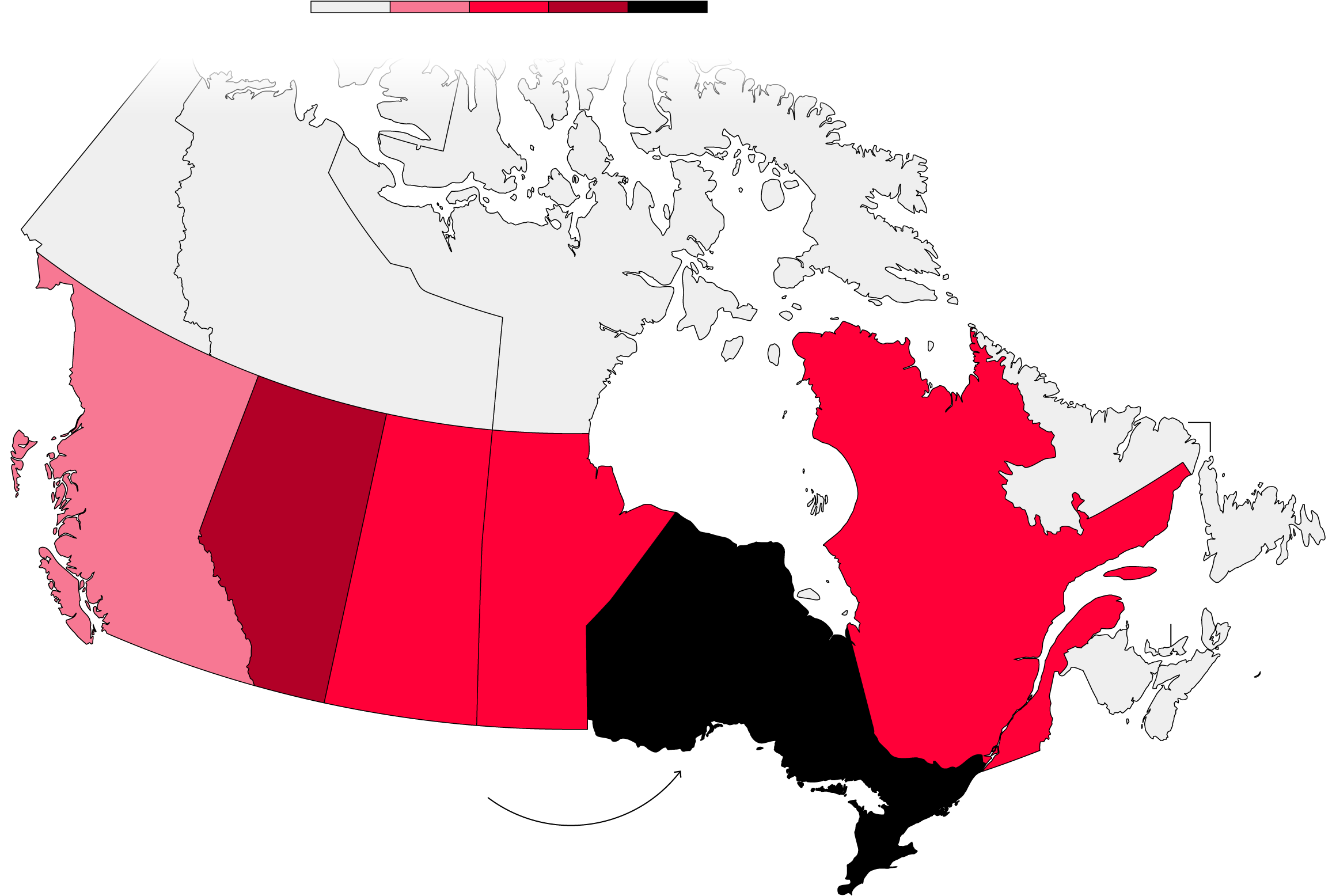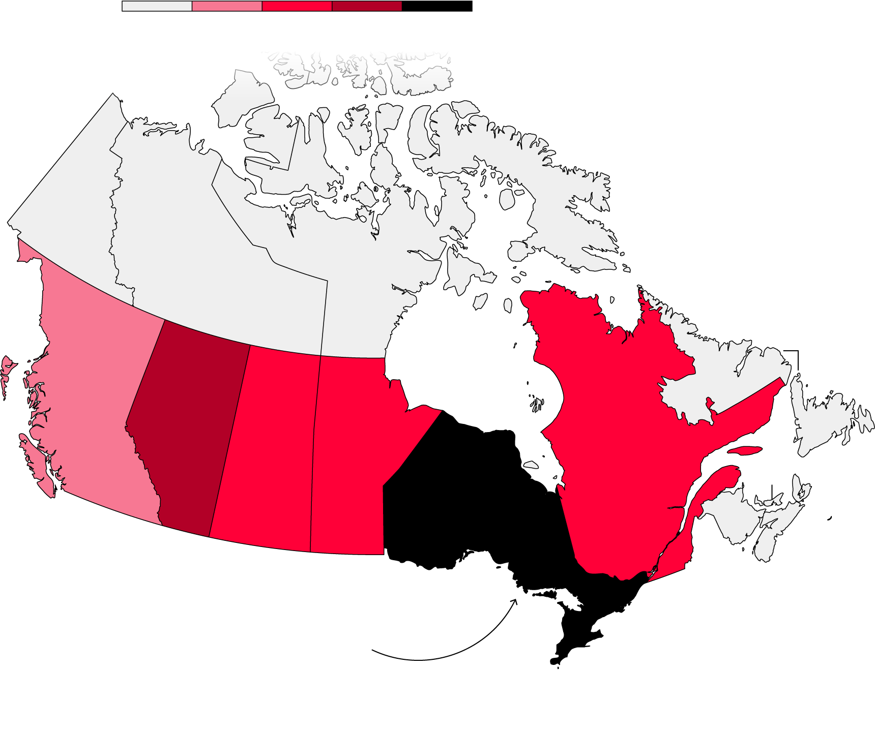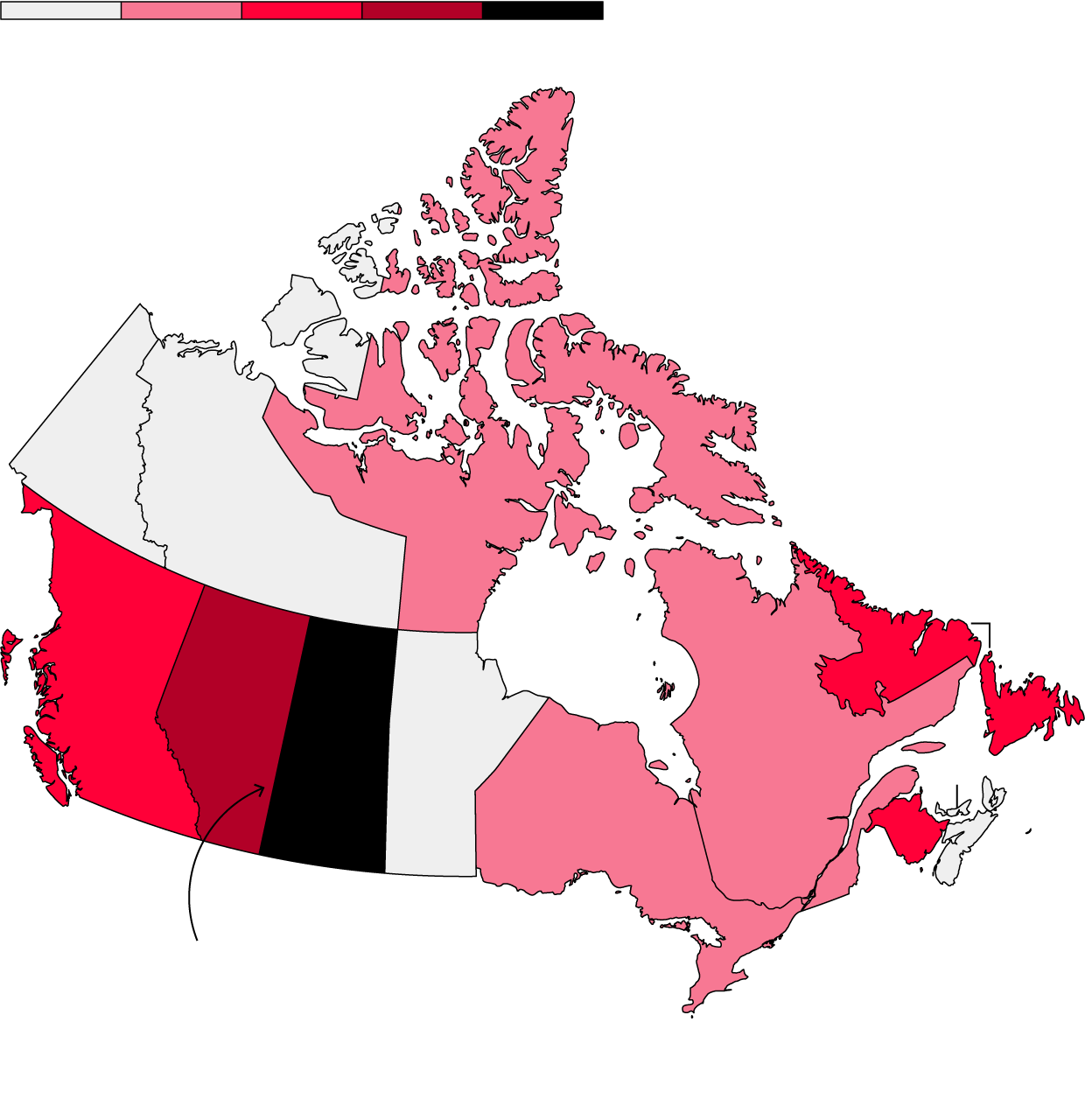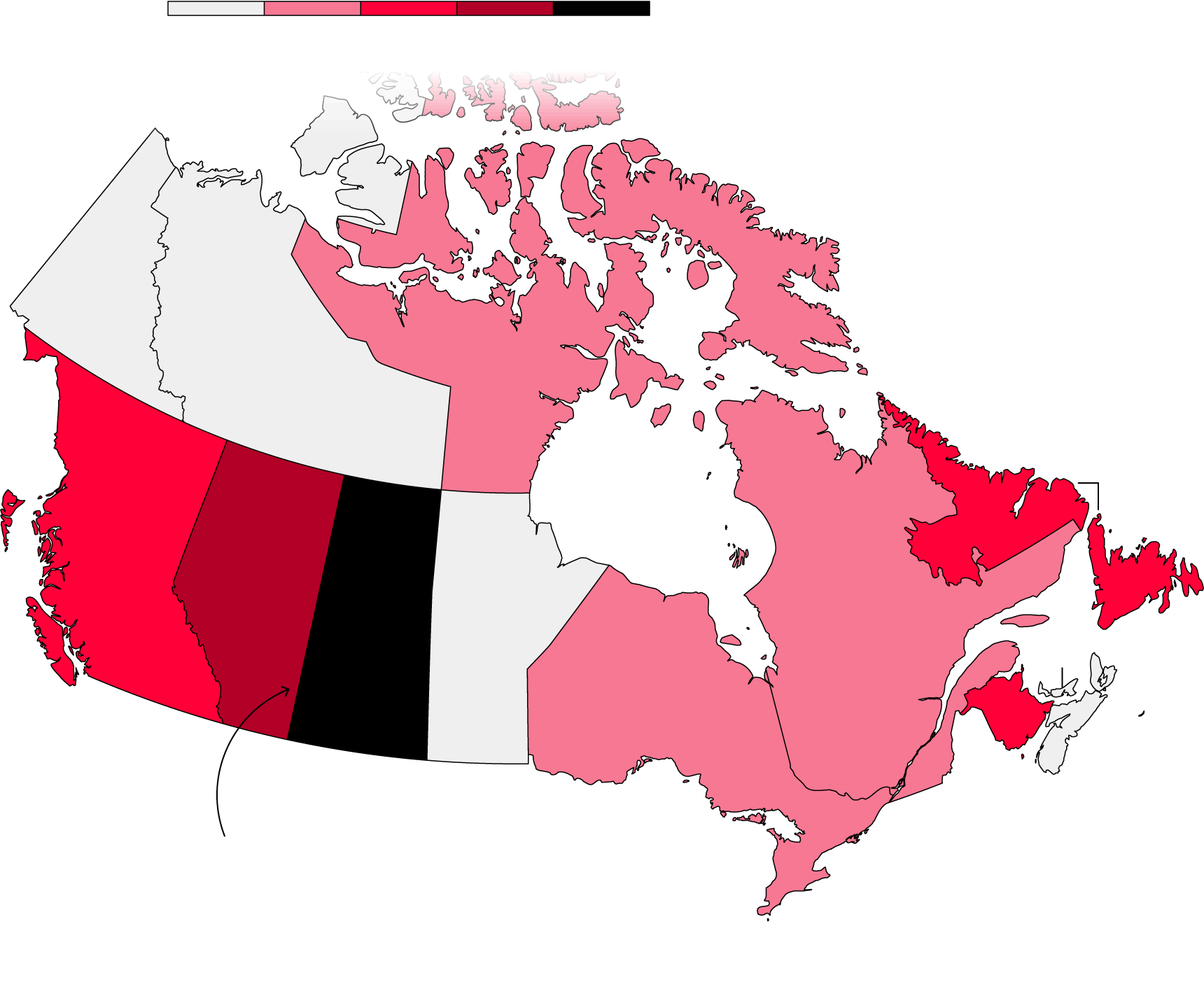 Nunavut, a sparsely populated territory where many Indigenous people practice hunting traditions, ranks second.