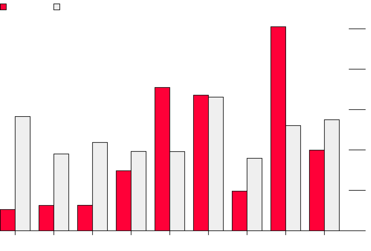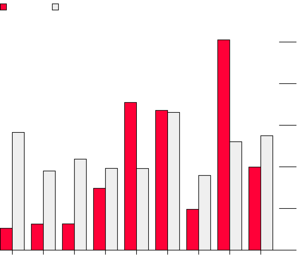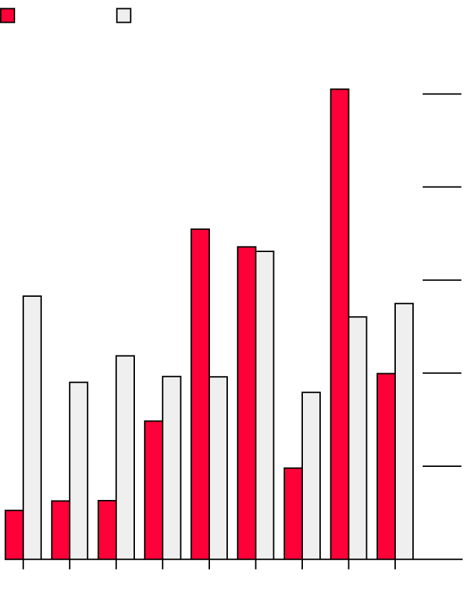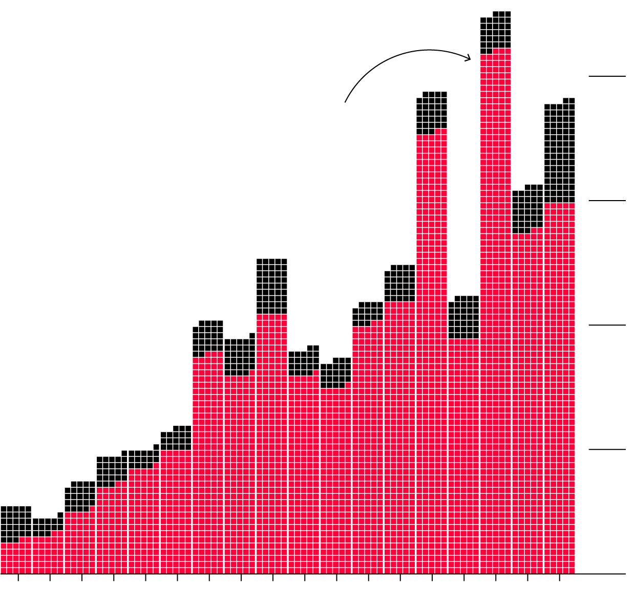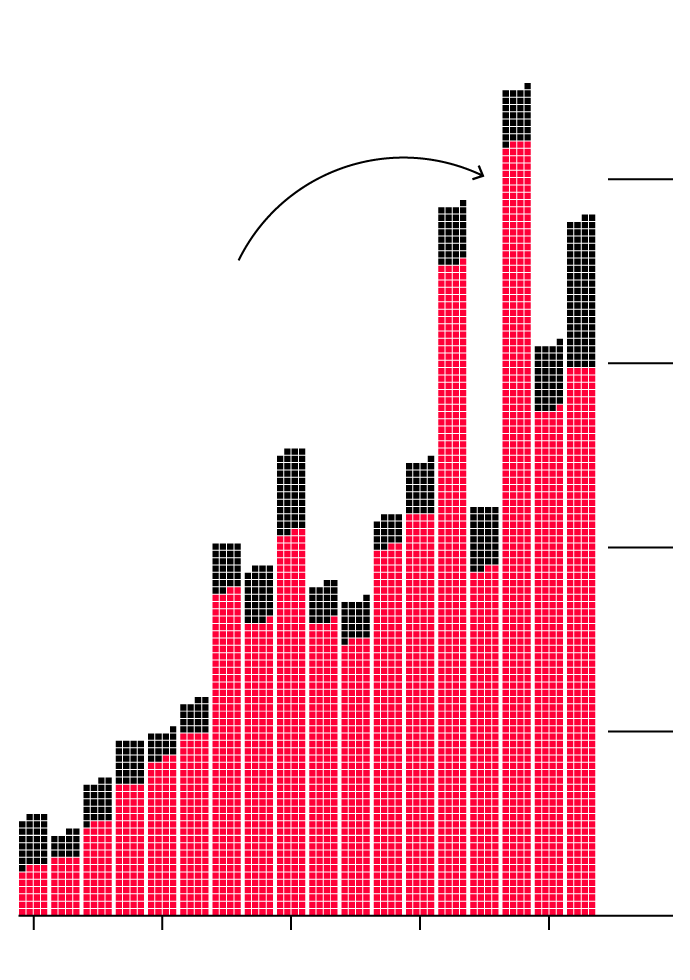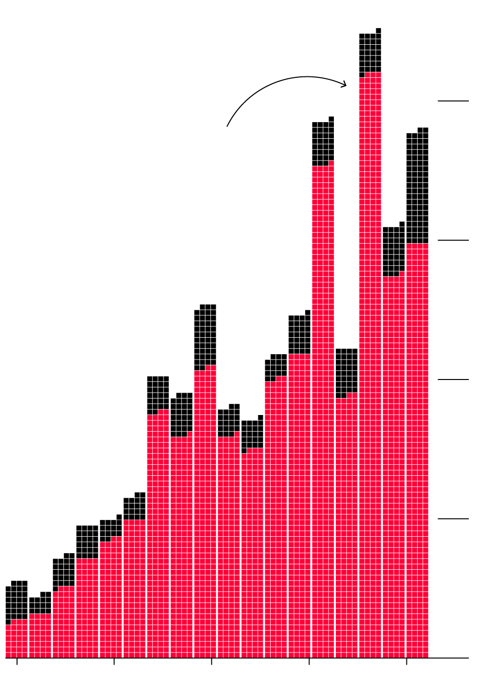 One square = 200 firearms: ◼ Pistols ◼ Rifles