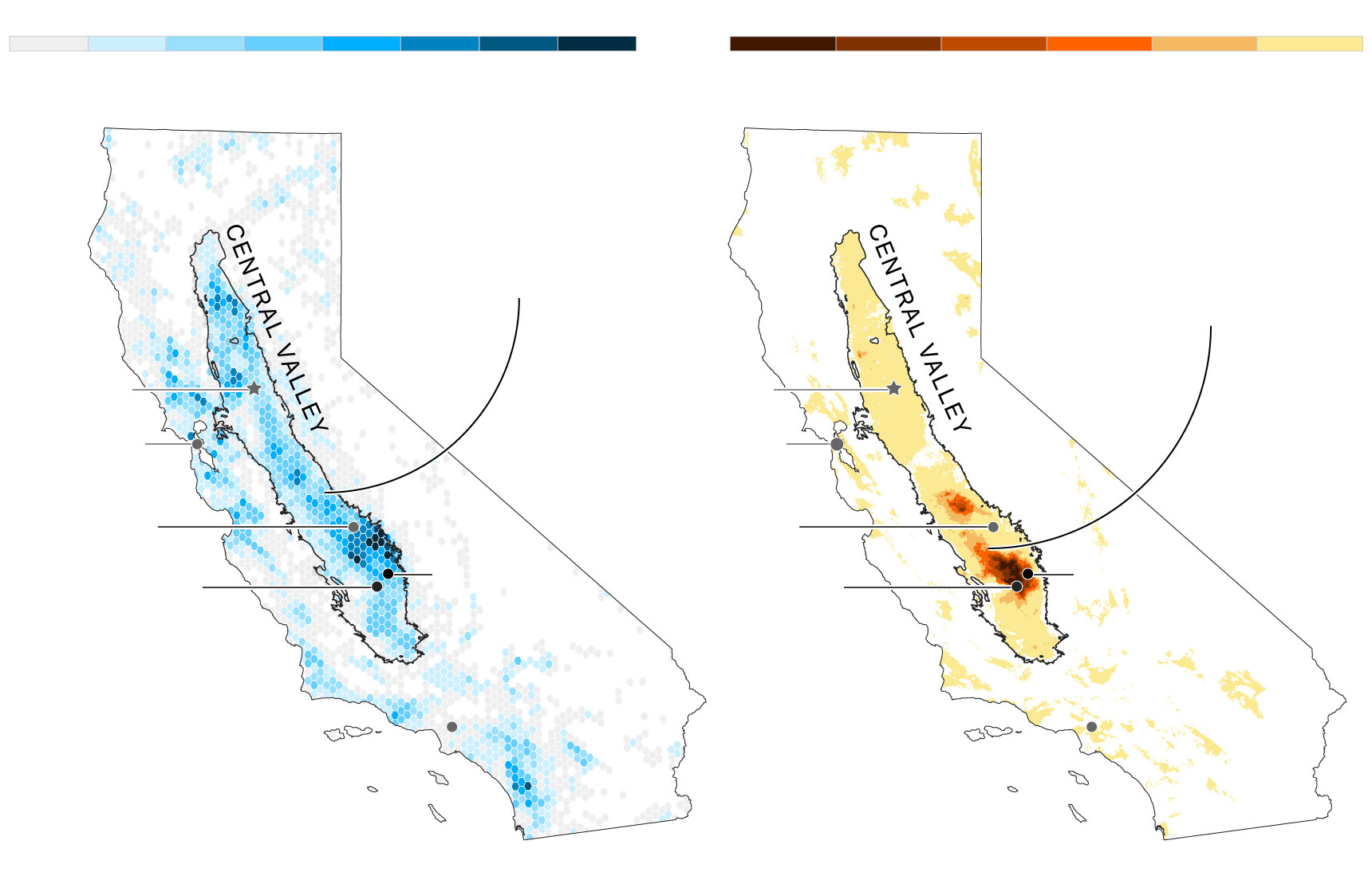 Some of the highest concentrations of farm wells are located in the Central Valley...