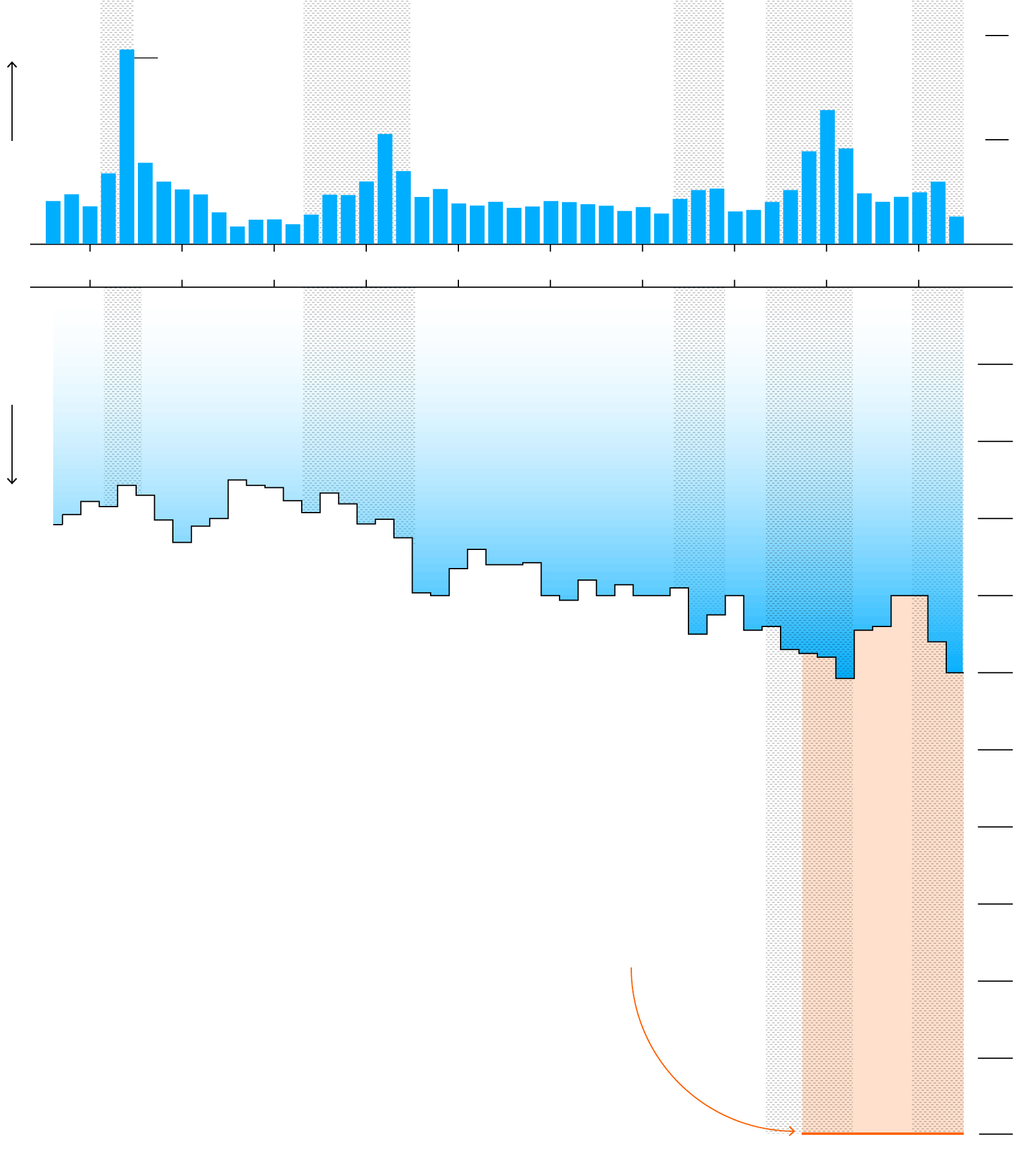 The impact of overpumping is permanent. The practice has caused much of Central California to sink at varying rates for a century, especially during drought, when farmers’ excessive groundwater extraction causes the subterranean clays to dry out and compact. In the past decade, parts of the San Joaquin Valley have dropped as much as a foot per year, according to the US Geological Survey. Subsidence, as the sinking is called, has damaged bridges, canals and other infrastructure that will cost billions of dollars to fix, the state says. The aquifers themselves are irreparable. Many groundwater basins, when drained, never recover their former storage capacity, hydrologists have found. “Groundwater in California has been treated as an extractive resource—you pump and hope for the best,” says Graham Fogg, an emeritus professor of hydrology at the University of California at Davis. “Capitalism is driving this. Investors don’t care, because in 10 years they can make all the money they want and leave.”